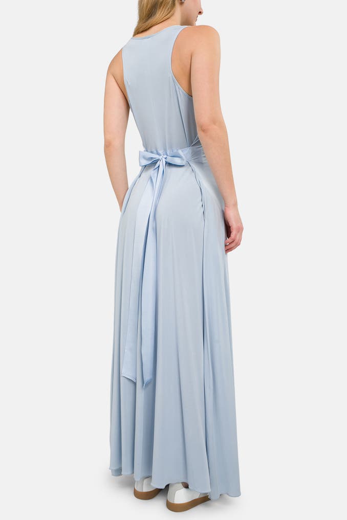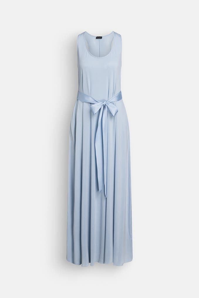 Verleihen Sie Ihrem festlichen Auftritt eine Extraportion Eleganz mit dem taubenblauen Kleid von EMPORIO ARMANI. Das ärmellose Modell besticht durch seinen figurbetonten Schnitt und den eleganten Rundhalsausschnitt.