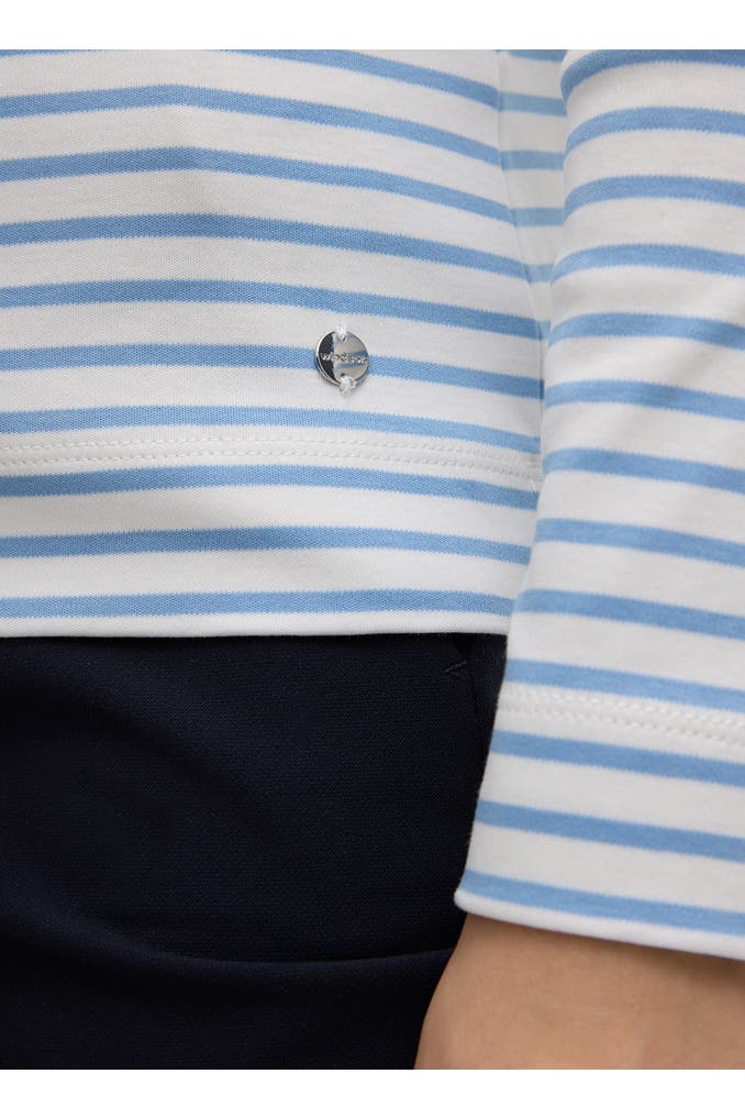 Der gestreifte Look zeichnet das Langarmshirt als zeitloses Essential für abwechslungsreiche Stylings aus – angenehmen Tragekomfort schenkt die reine Bio-Baumwoll-Qualität. Klassische Details wie lange Ärmel und ein Rundhalsausschnitt verleihen ein stilvolles Finish, ergänzt durch feine Nähte. Für den Signature-Akzent sorgt die runde Logo-Plakette am doppelt vernähten Saumabschluss.