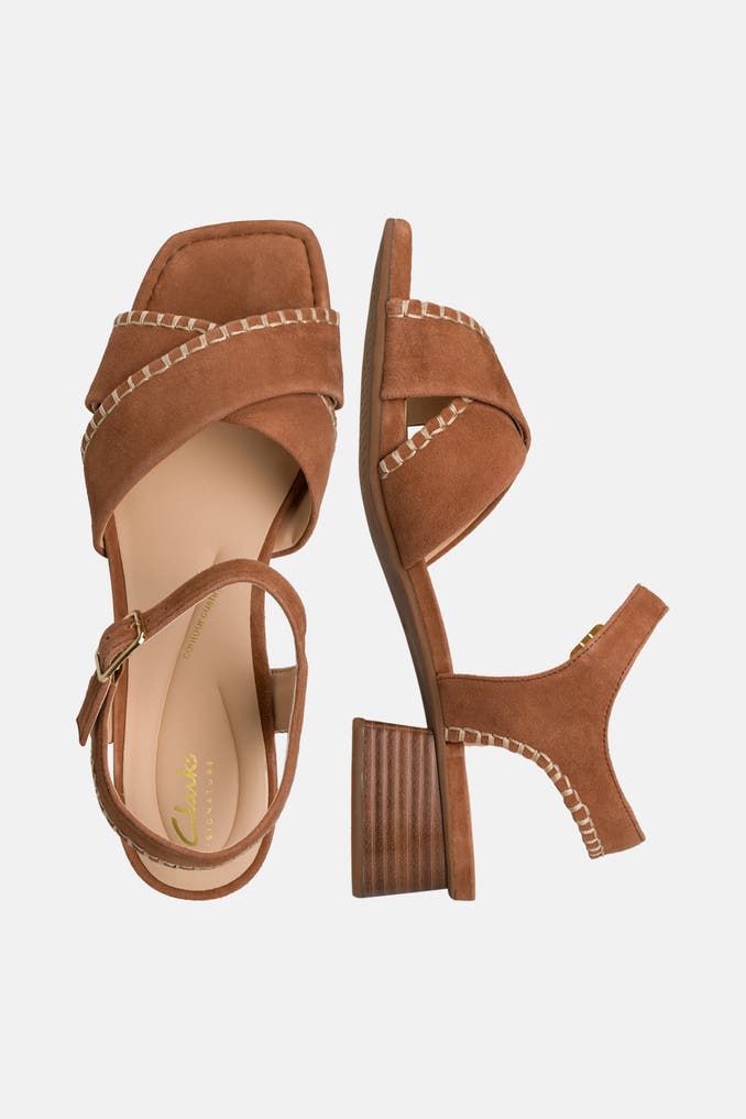 Diese eleganten Leder-Sandaletten 'Serina' in Cognac von Clarks mit Blockabsatz und offener Schuhspitze sind perfekt für einen stilvollen Sommerlook. Die Gummisohle sorgt für einen bequemen Tragekomfort und der Riemenverschluss einen sicheren Halt.