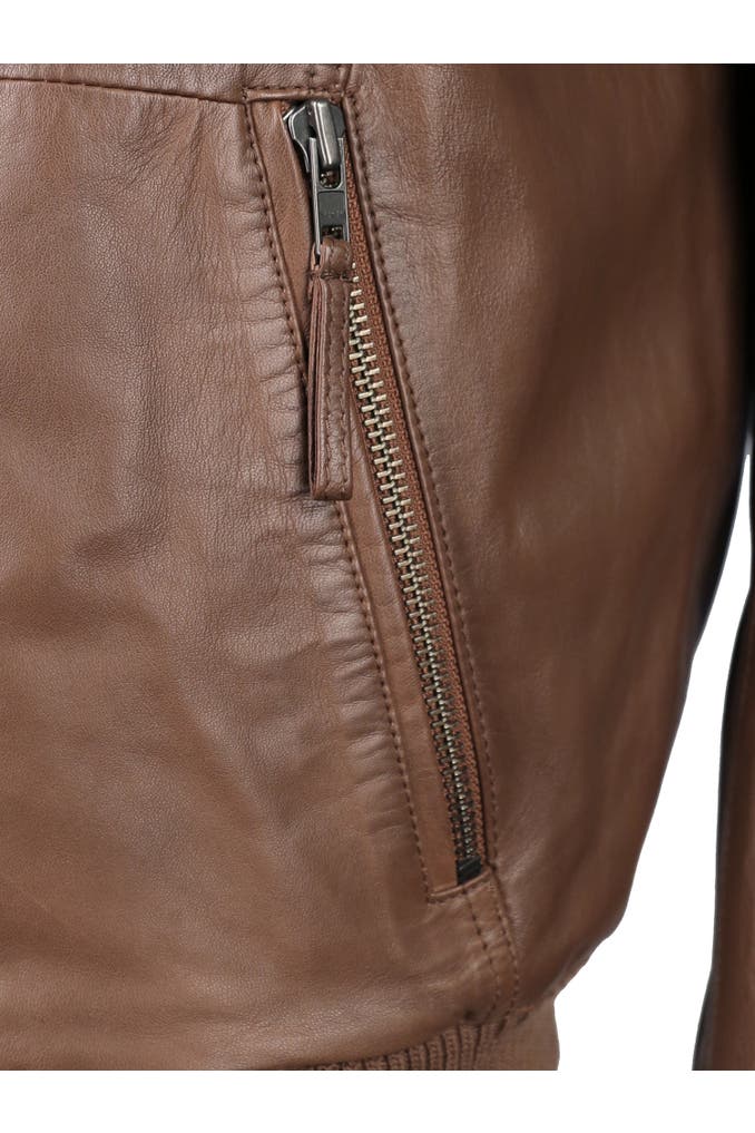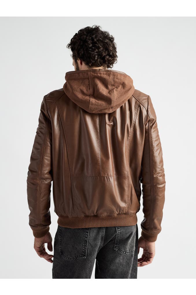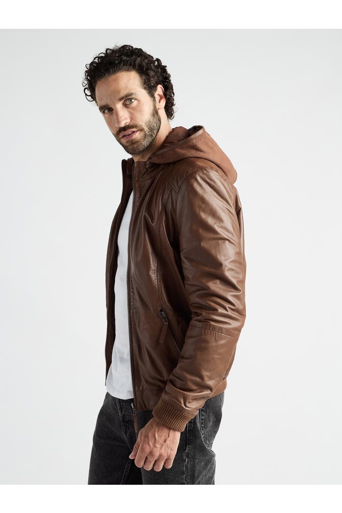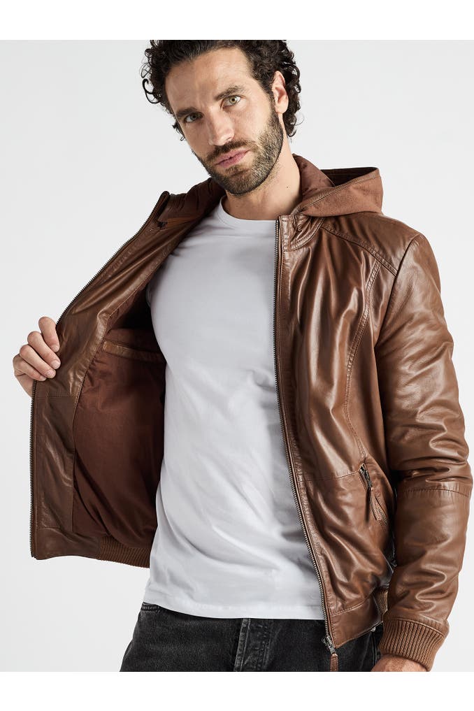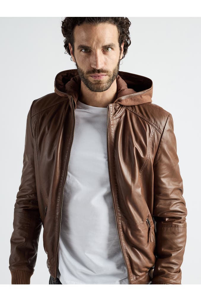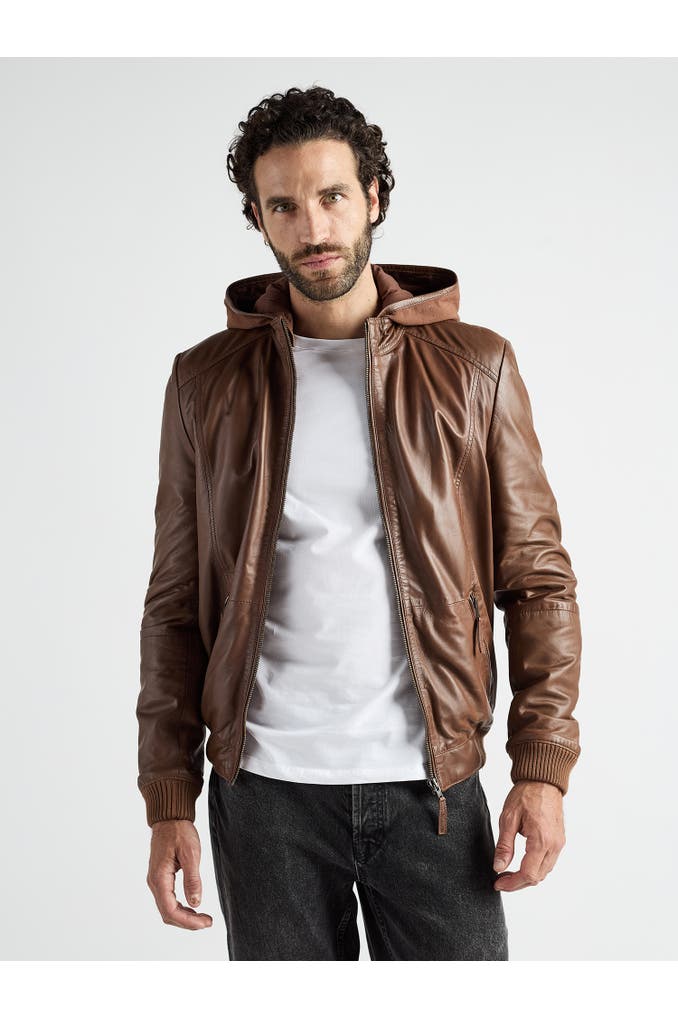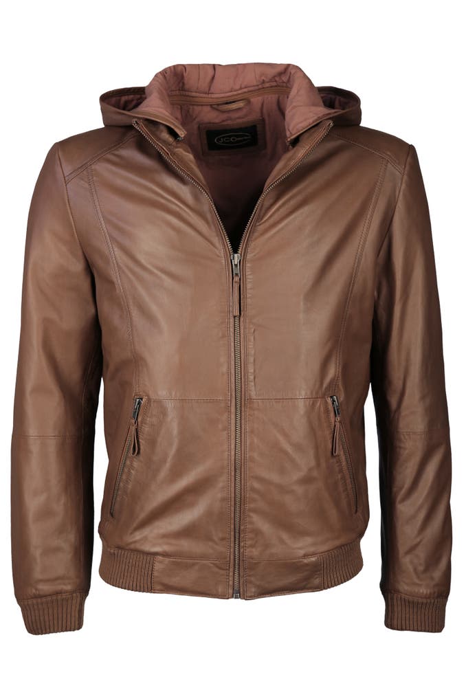Diese Lederjacke aus hochwertigem Material vereint markantes Design mit funktionalen Details wie einem kurzen Stehkragen mit integrierter Kapuze und zwei praktischen Reißverschlusstaschen. Die elastischen Bündchen an Ärmeln und Saum sorgen für eine optimale Passform und hohen Tragekomfort. Ziernähte an den Schultern unterstreichen den dynamischen Look und verleihen der Jacke eine moderne Note. Mit dem sportlich lässigen Design dieser Jacke machen Sie in jeder Situation eine gute Figur.