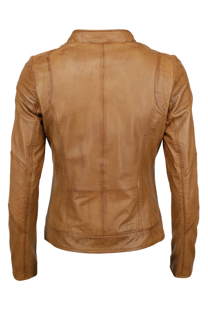 Trendige Damenlederjacke aus sanftem Lammleder der Marke MUSTANG. Die aufwendig eingenähten Seitentaschen mit Zipper und der kurze Stehkragen mit Druckknopf machen diese Jacke zu einem besonderen Highlight. Die Jacke besitzt sehr schöne Ziernähte und ist mit einer offenen Innentasche ausgestattet. Das gewisse Etwas erhält sie durch den Leopardenprint im Inneren.