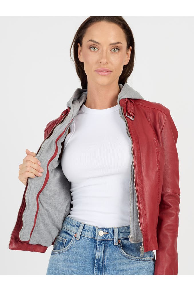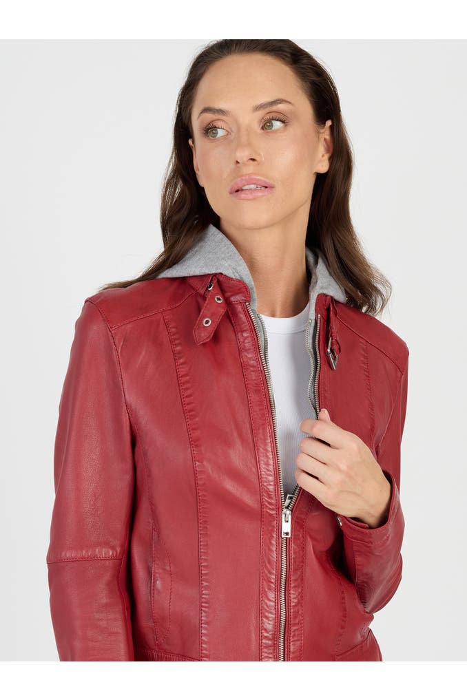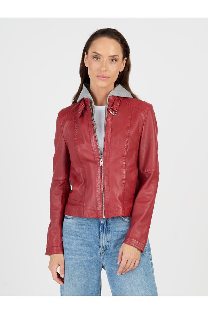 Diese Damen-Lederjacke aus weichem Lammnappa begeistert mit ihren auffälligen Farben und einem sportlich-modernen Design. Mit ihrer taillierten Passform und dem markanten Stehkragen samt Schnalle strahlt die Jacke zugleich Stärke und feminine Eleganz aus. Tragekomfort. Zwei seitliche Reißverschlusstaschen und ein durchgehender Frontreißverschluss runden das Design funktional und stilvoll ab.