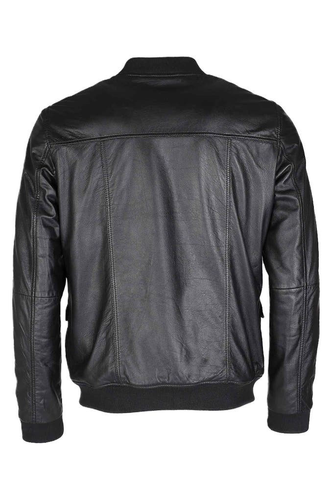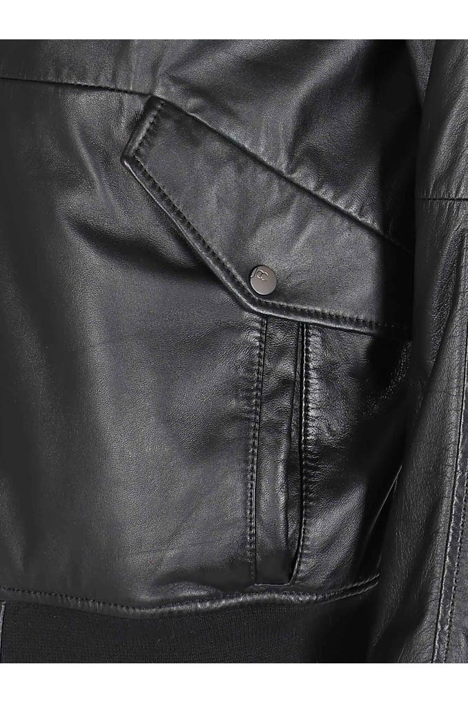 Lässiger Lederblouson mit stilvollen Details. Der Strick an Kragen, Ärmel und Saum verleiht eine sportive Note, während dezente Logo-Accessoires das Design abrunden. Perfekt für einen vielseitigen Look.