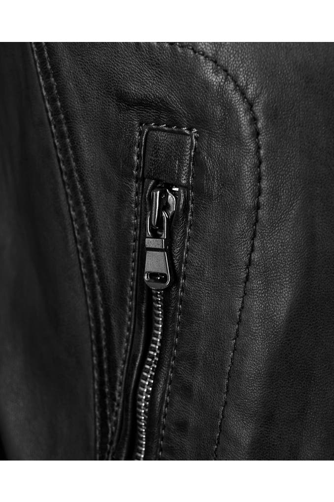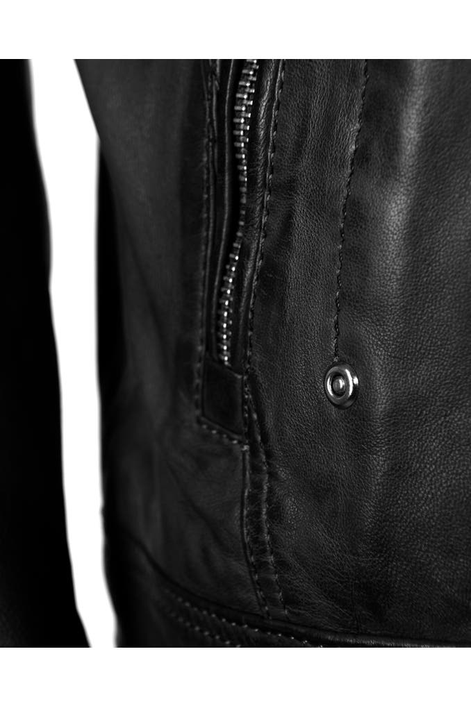 Diese Lederjacke aus weichem Lammleder trägt sich traumhaft. Es gibt zwei seitliche Einschubtaschen mit Reißverschluss und zwei Innentaschen inklusive einer Handytasche. Der Druckknopf am Rundhalskragen fügt sich mit den sauber eingearbeiteten Ziernähten, den Absteppungen im Schulterbereich und dem Karomuster im Inneren zu einem schönem Gesamtbild zusammen. Sie wird über einen Reißverschluss geschlossen und ist gerade geschnitten. Für den optimalen Sitz befinden sich jeweils Reißverschlüsse an den Ärmelenden, die sich individuell verschließen lassen.