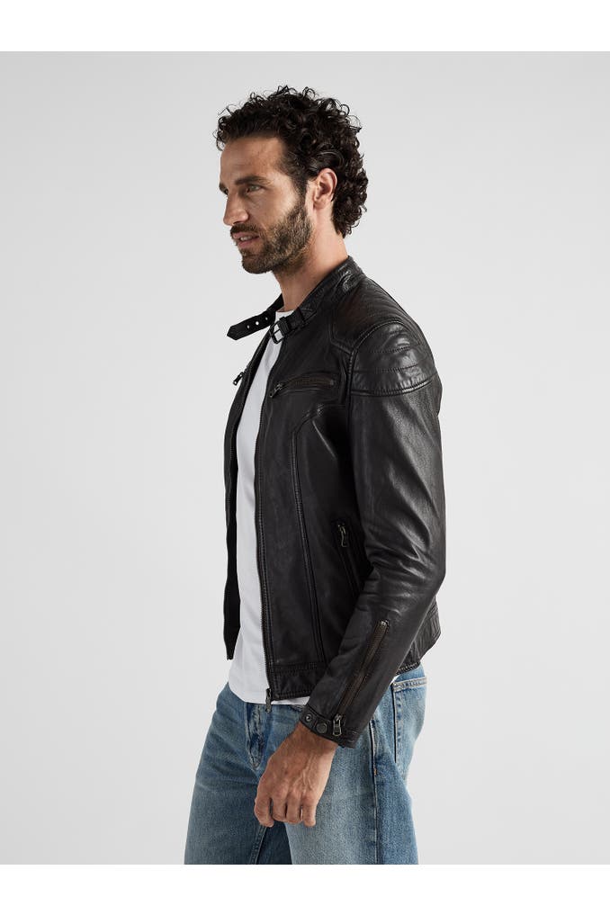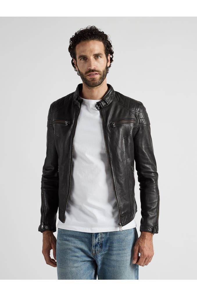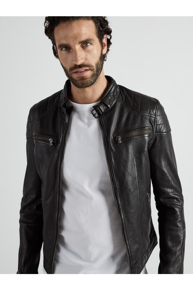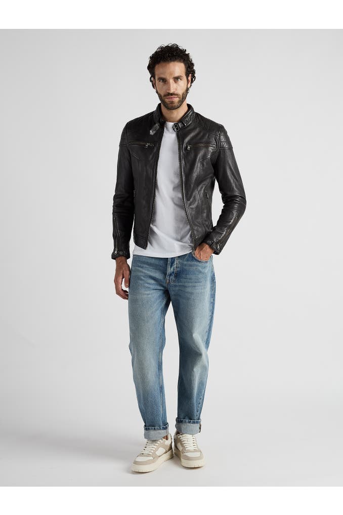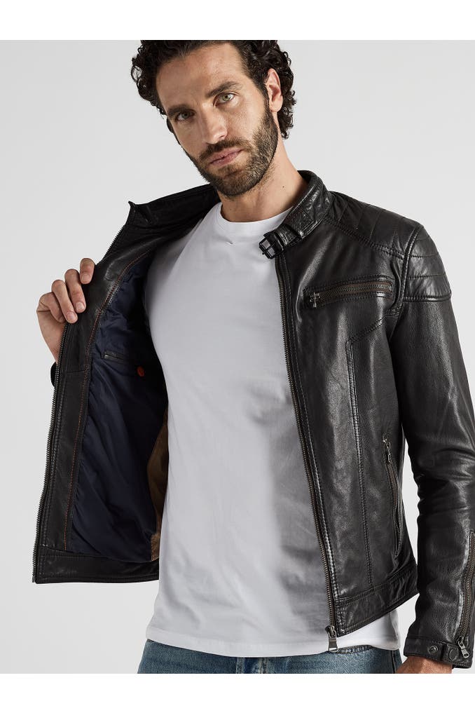 Diese Lederjacke aus weichem Lammleder besitzt zwei Brusttaschen mit Reißverschluss, zwei seitliche Einschubtaschen und zwei Innentaschen. Die Verschlussschnalle am Rundhalskragen bildet im Zusammenhang mit den sauber eingearbeiteten Ziernähten & dem Polyesternetz im Inneren eine fein abgestimmte Lederjacke für Herren. Sie wird über einen Reißverschluss geschlossen und ist gerade geschnitten. Für den optimalen Sitz befinden sich jeweils ein Druckknopf inkl. einem Reißverschluss an den Ärmelenden, die sich individuell verschließen lassen.