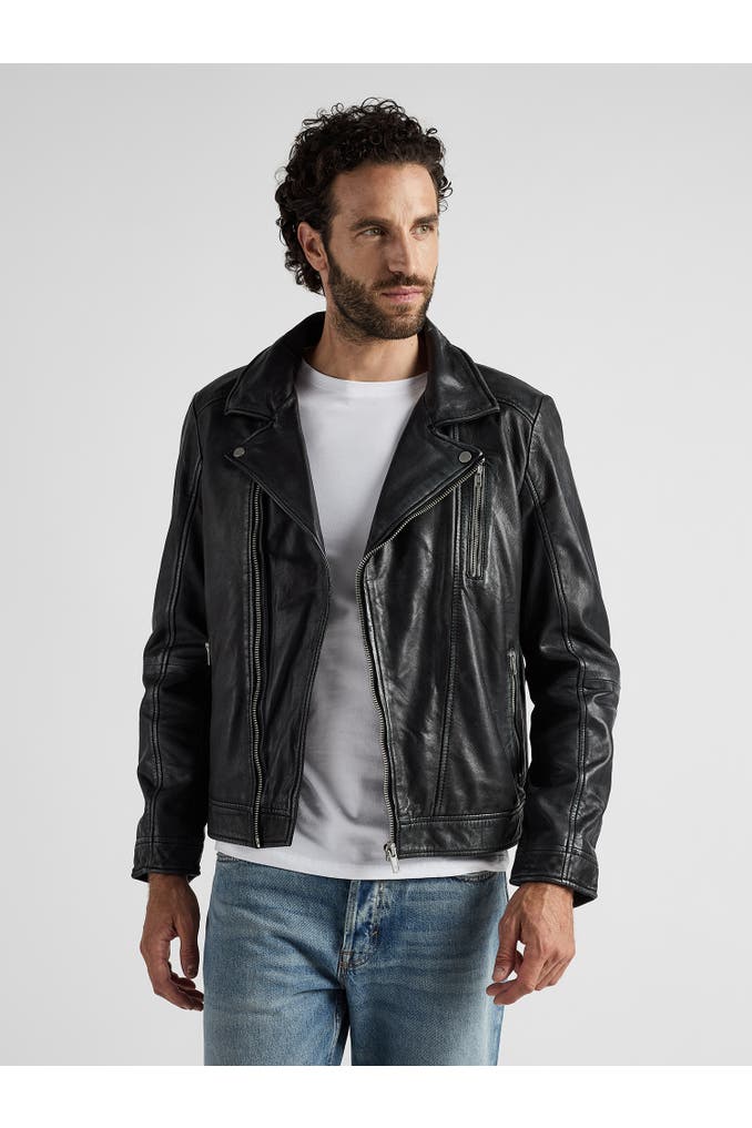 Die Jacke besticht durch ihren asymmetrischen Reißverschluss und den sportlichen Schnitt. Die Seiten- und Brusttaschen sind mit Zipper verschließbar. Mit dieser sportlichen Jacke im Bikerstil machen Sie in jeder Hinsicht eine gute Figur.