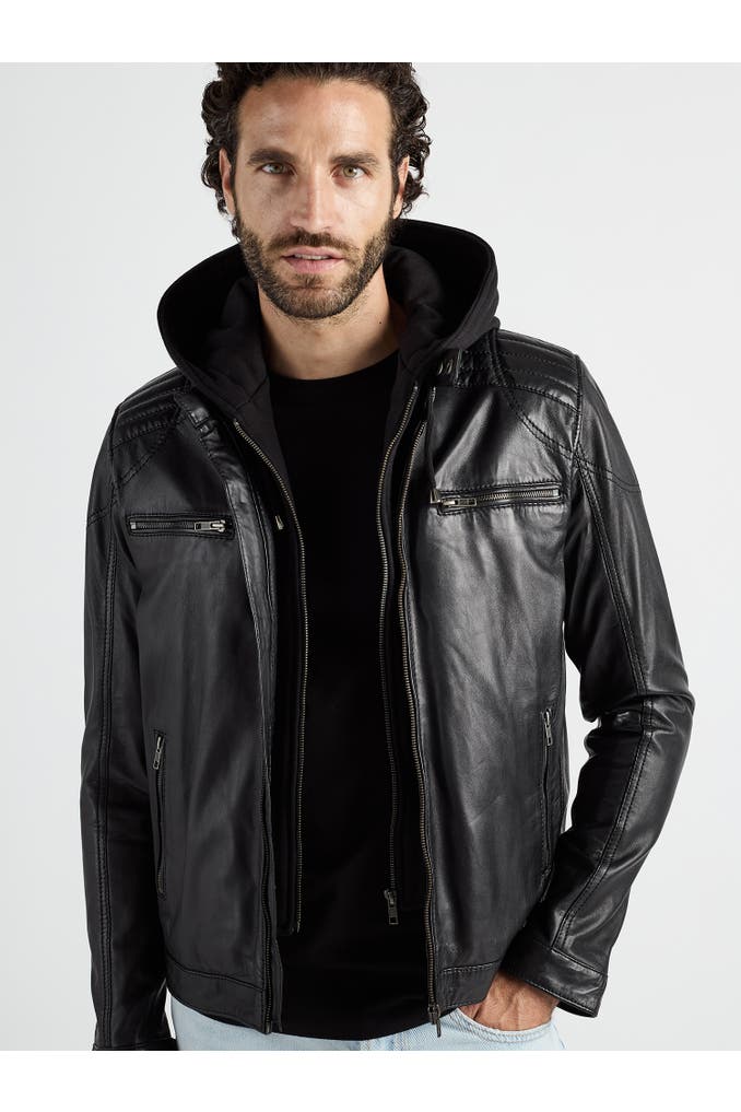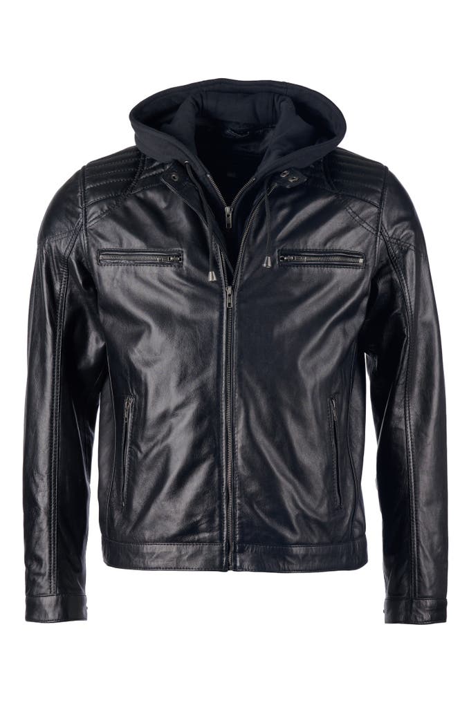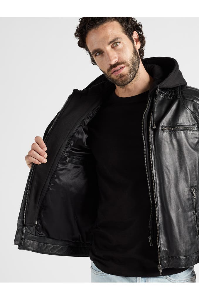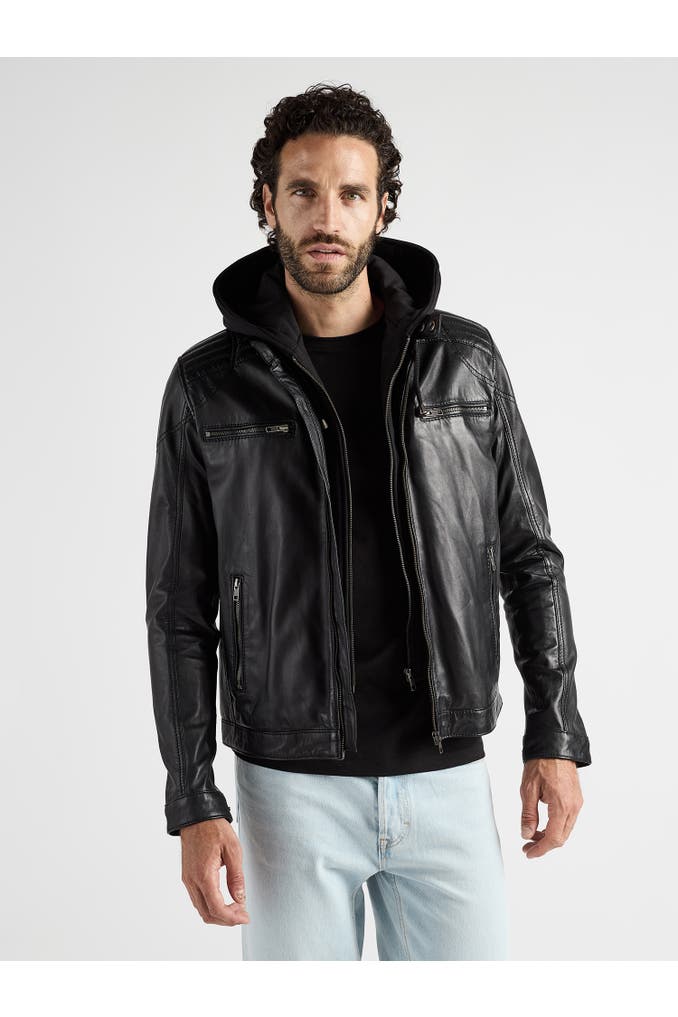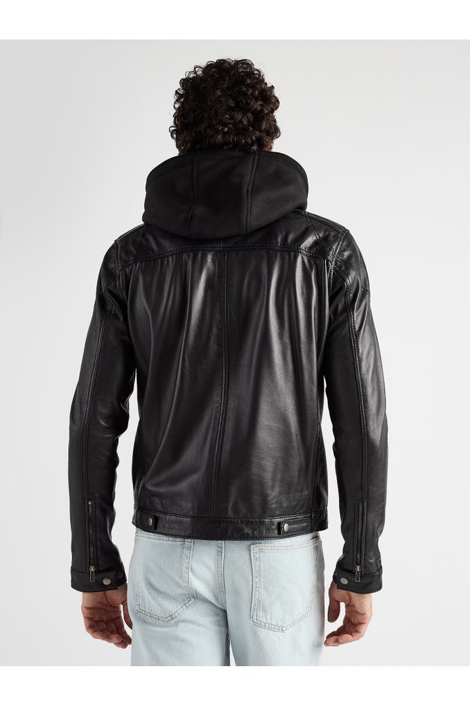 Diese modische Lederjacke aus Schafsleder vereint urbanen Streetstyle mit hochwertiger Verarbeitung und funktionalen Details. Ausgestattet ist diese Jacke mit markanten Ziernähten, Reißverschlusstaschen sowie einer wärmenden, integrierten Kapuze. Des Weiteren besitzt die Jacke zwei Brusttaschen sowie einen doppelten Reißverschluss.Der doppelte Reißverschluss sorgt für ein reibungsloses An- und Ausziehen und unterstreicht den Komfort der Jacke. Diese Lederjacke ist somit ein vielseitig anziehbares Stück - ideal für die kalten Tage.