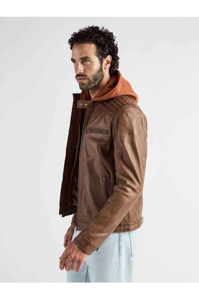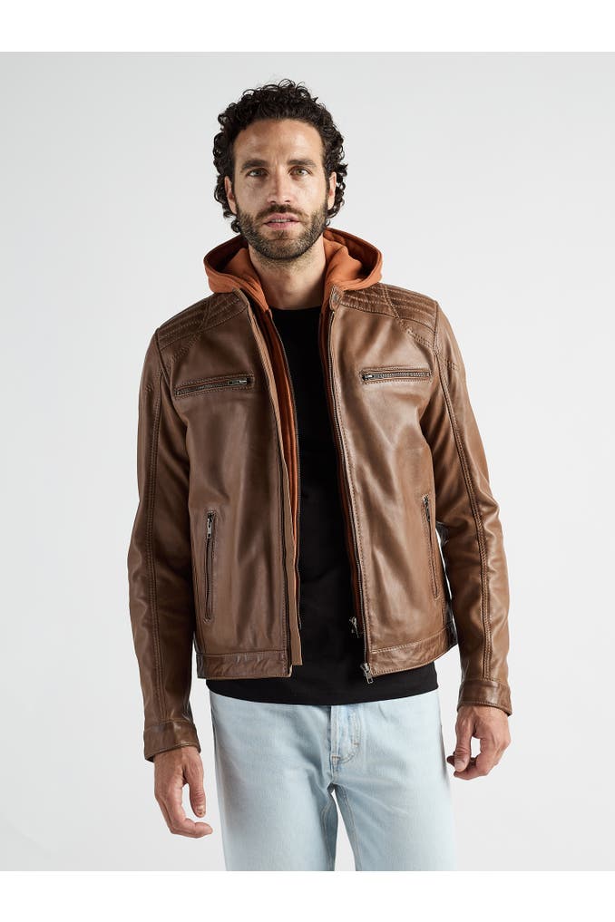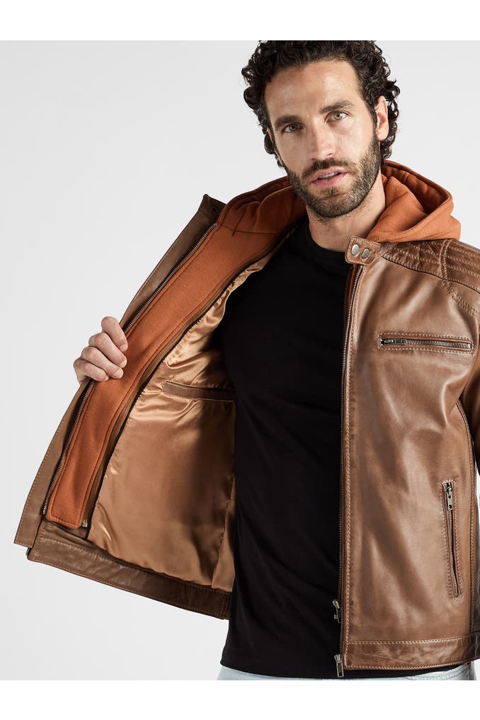 Diese modische Lederjacke aus Schafsleder vereint urbanen Streetstyle mit hochwertiger Verarbeitung und funktionalen Details. Ausgestattet ist diese Jacke mit markanten Ziernähten, Reißverschlusstaschen sowie einer wärmenden, integrierten Kapuze. Des Weiteren besitzt die Jacke zwei Brusttaschen sowie einen doppelten Reißverschluss.Der doppelte Reißverschluss sorgt für ein reibungsloses An- und Ausziehen und unterstreicht den Komfort der Jacke. Diese Lederjacke ist somit ein vielseitig anziehbares Stück - ideal für die kalten Tage.