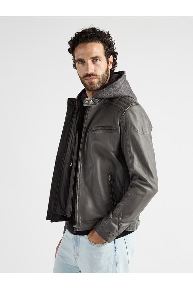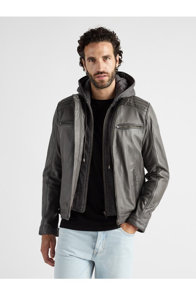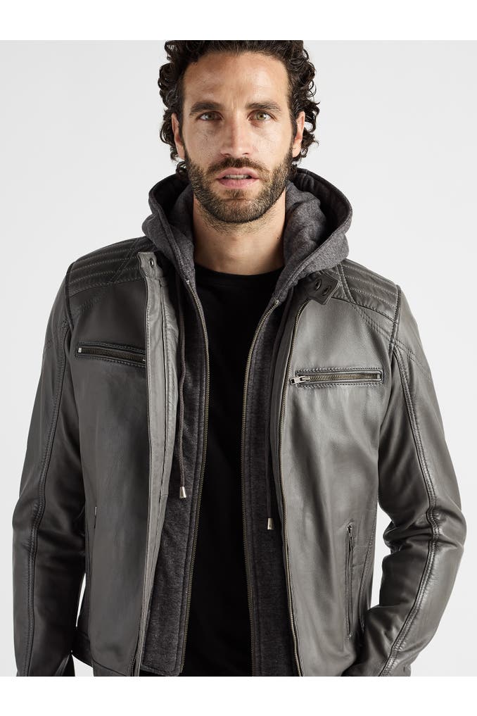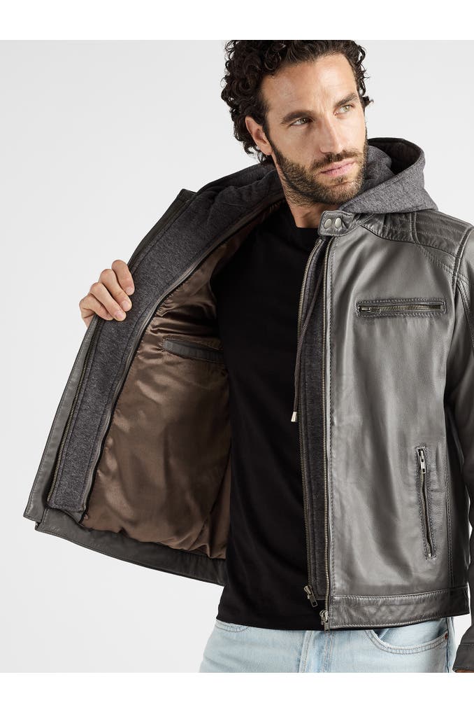 Diese modische Lederjacke aus Schafsleder vereint urbanen Streetstyle mit hochwertiger Verarbeitung und funktionalen Details. Ausgestattet ist diese Jacke mit markanten Ziernähten, Reißverschlusstaschen sowie einer wärmenden, integrierten Kapuze. Des Weiteren besitzt die Jacke zwei Brusttaschen sowie einen doppelten Reißverschluss.Der doppelte Reißverschluss sorgt für ein reibungsloses An- und Ausziehen und unterstreicht den Komfort der Jacke. Diese Lederjacke ist somit ein vielseitig anziehbares Stück - ideal für die kalten Tage.