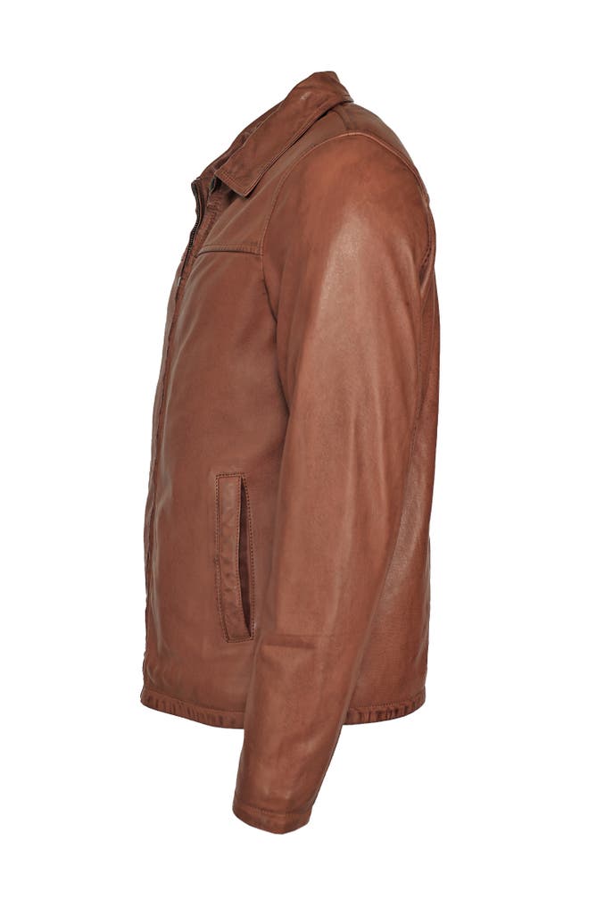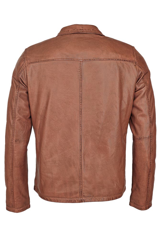 Diese stilvolle Lederjacke überzeugt durch ihren klassischen Hemdkragen und ein zeitloses Design. Zwei dezent eingearbeitete Seitentaschen bieten praktischen Stauraum und hohen Tragekomfort.