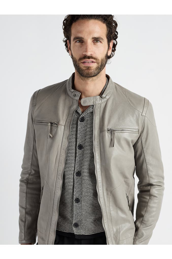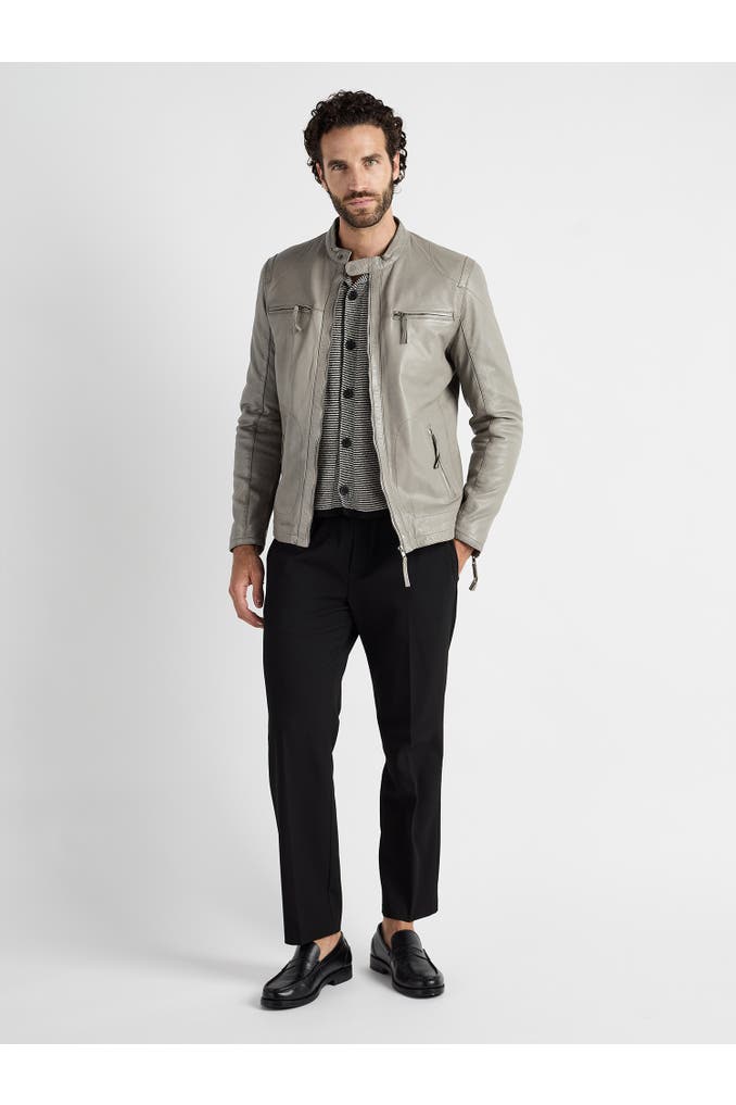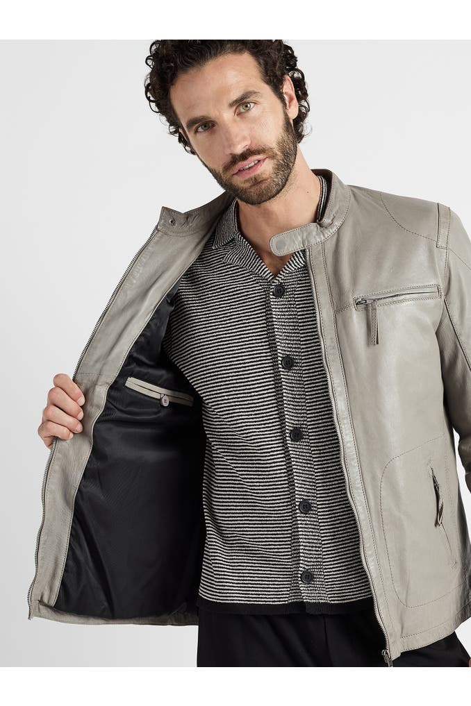Diese hochwertige Lederjacke der Marke JCC besteht aus weichem Lammleder und überzeugt mit einem modernen, maskulinen Design.. Markante Details wie die hellen Nähte, Steppungen an Brust und Ärmeln sowie Strickbündchen an Kragen, Ärmeln und Saum verleihen ihr einen lässigen Charakter. Ausgestattet mit einem warmen Innenfutter bietet sie optimalen Tragekomfort auch an kühleren Tagen. Praktische Funktionen wie zwei Brusttaschen, zwei Reißverschlusstaschen sowie zwei Innentaschen runden das durchdachte Design ab.