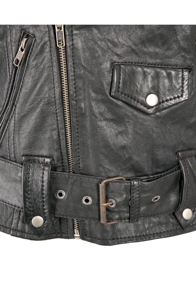 Modische Damenlederjacke aus feinstem Schafsleder von JCC. Hochwertig gearbeitete Details wie die seitlichen Einschubtaschen mit Reißverschluss und der coole Kragen betonen das edle Design. Die weiche aber dennoch robuste Lederjacke wird über einen kurzen Reißverschluss geschlossen.