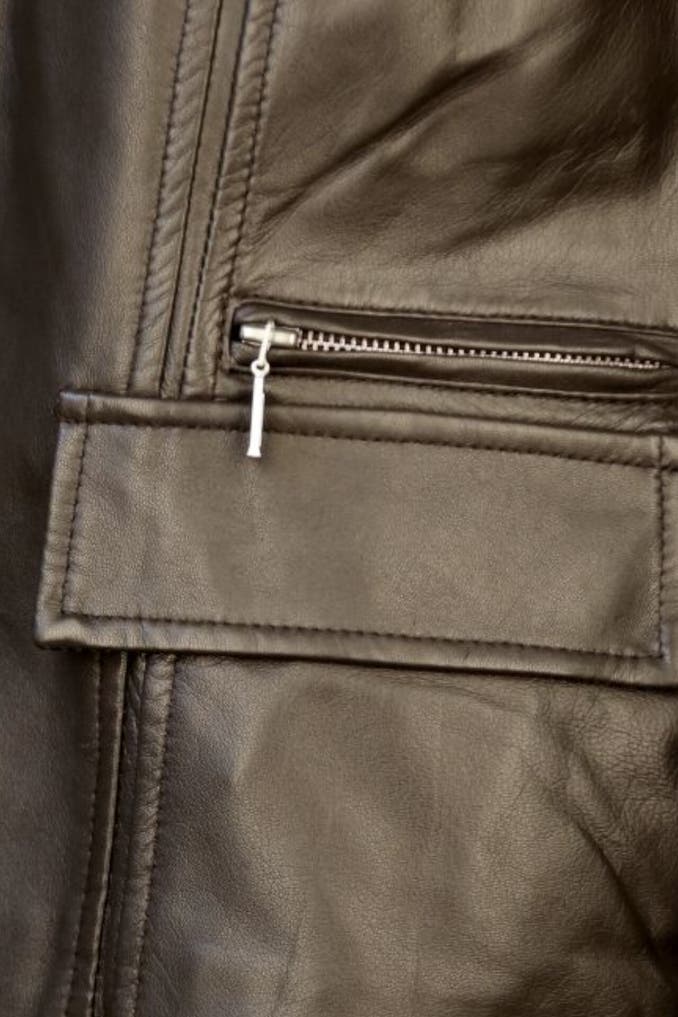Diese Lederjacke ist mit einem Reißverschluss versehen und bringt viele Kombinationsmöglichkeiten mit sich.