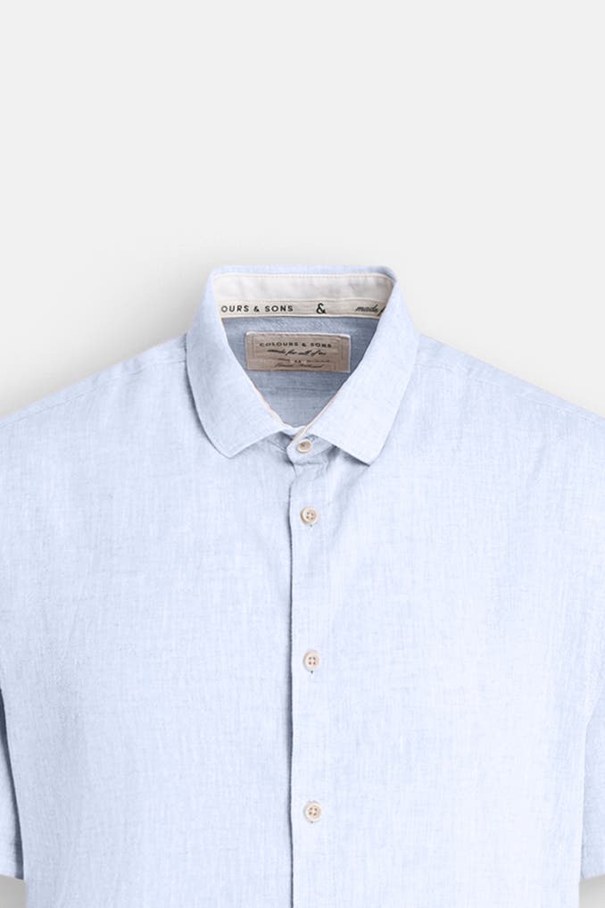 COLOURS & SONSLeinenmix-Kurzarmhemd hellblau