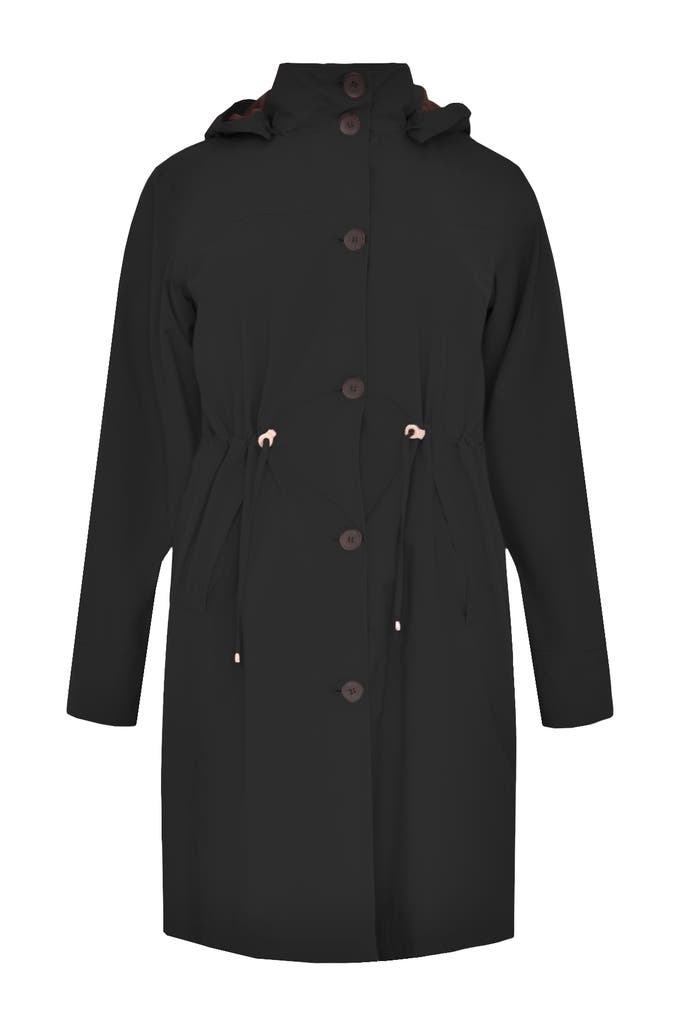 Das Wetter in Europa brachte uns auf die Idee einer trendigen Regenmantel-Kollektion und voilà - hier ist sie! Dieses besondere Modell hat einen Kordelzug in der Taille, um eine feminine Silhouette zu schaffen. Das Material ist sowohl wind- als auch wasserdicht und alle Nähte sind versiegelt, um ein Eindringen von Wasser zu verhindern. Der Mantel hat Windfänge in den Ärmeln, eine einstellbare, abnehmbare Kapuze und er wird vorne mit Reißverschluss und Knöpfen geschlossen. Sie werden es nicht abwarten können, bis es endlich regnet!