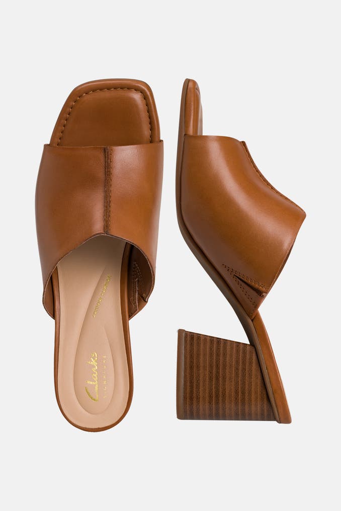 Diese modischen Mules 'Siara' in Cognac von Clarks mit Blockabsatz und offener Schuhspitze eignen sich perfekt für den Freizeit-Look. Die Gummisohle und der Schlupf-Verschluss sorgen für Komfort und einen trendigen Auftritt.