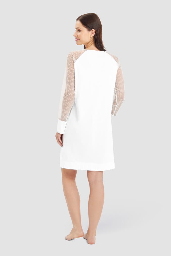 Nachthemd mit Rundhals in puristischem Look mit transparentem Raglanarm aus hochwertigem Spitzenplain in Streifenoptik. Breite Armbündchen und die Saumschlitze betonen die Modernität dieses Styles.