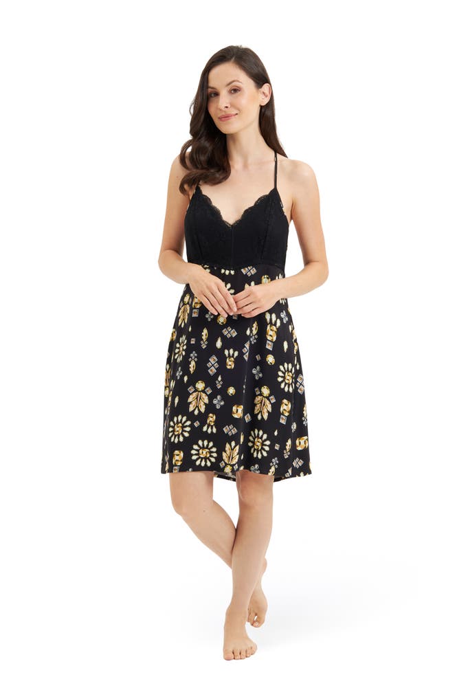Nachtkleid ärmellos im Diamant-Druck Spitzendetails Viskose