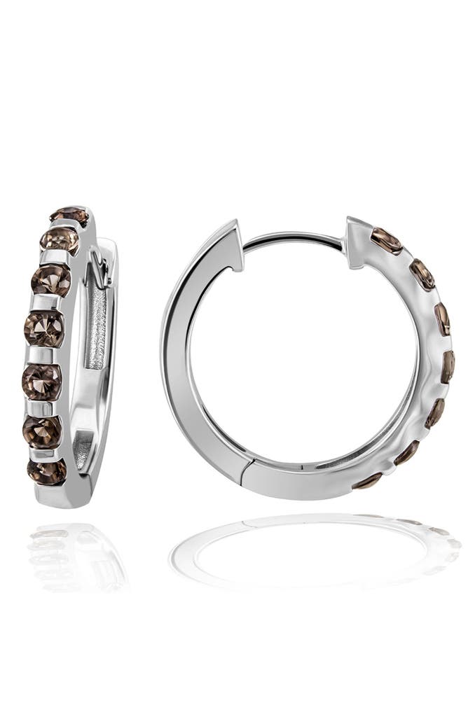 Klapp-Creolen aus 585/- Weißgold 14 Rauchquarze braun facettiert