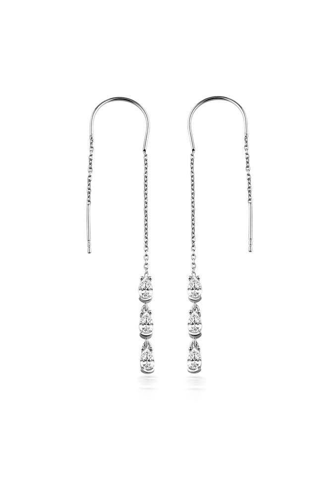 Dkeniz Ohrhänger Doppel-Strang 925 Sterling Silber rhodniert Zirkonia Tropfen weiß Zargenfassung