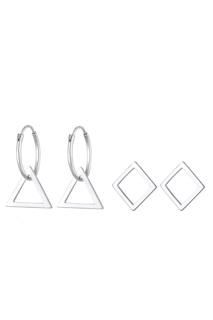 ELLIOhrringe Creole 3-Set Hänger Geo Prisma Trend 925 Silber Silber