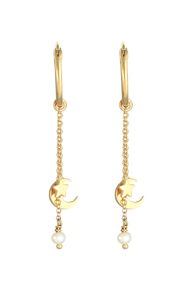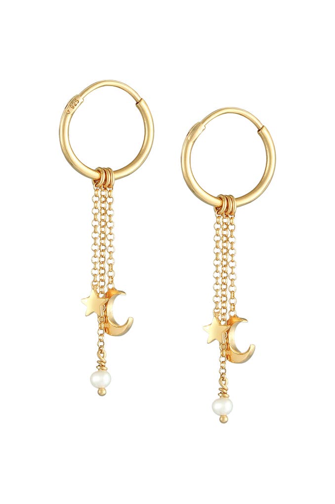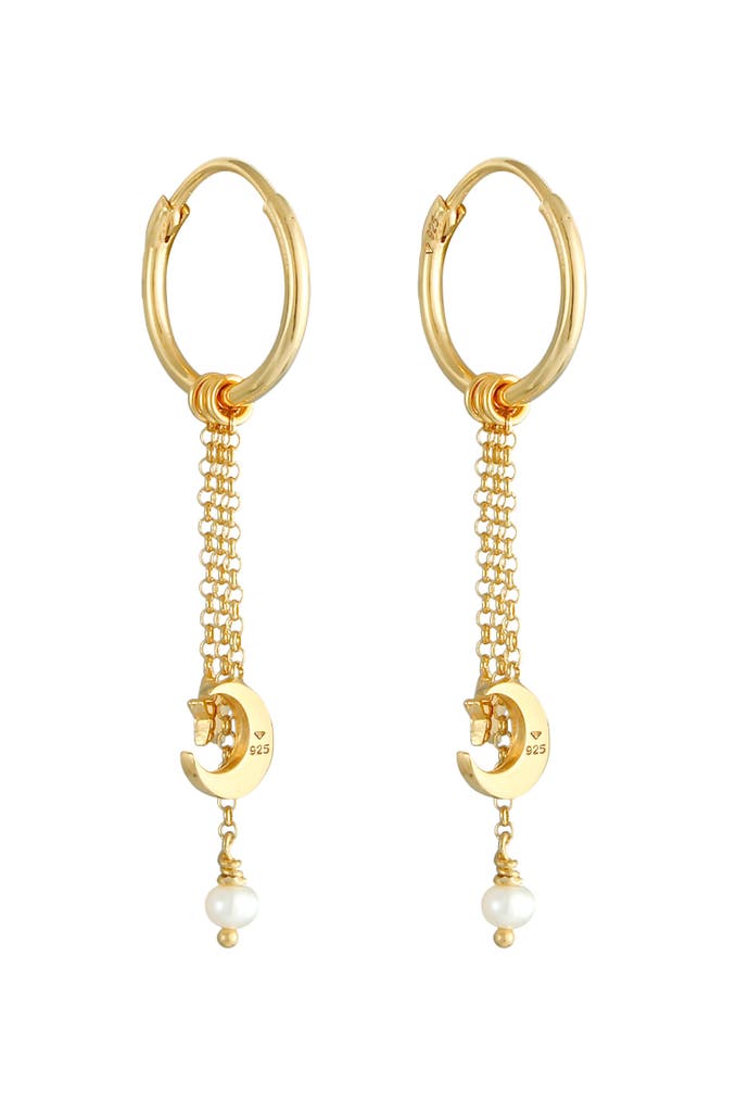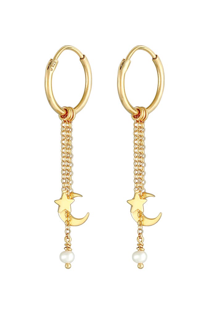 ELLIOhrringe Creolen Hänger Stern Mond Zuchtperle 925 Silber Gold