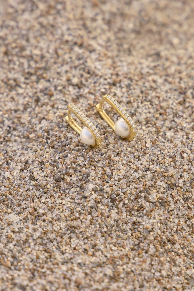 AMOROhrringe für Damen, 925 Sterling Silber, Zirkonia synth., Muschelkernperle Gold