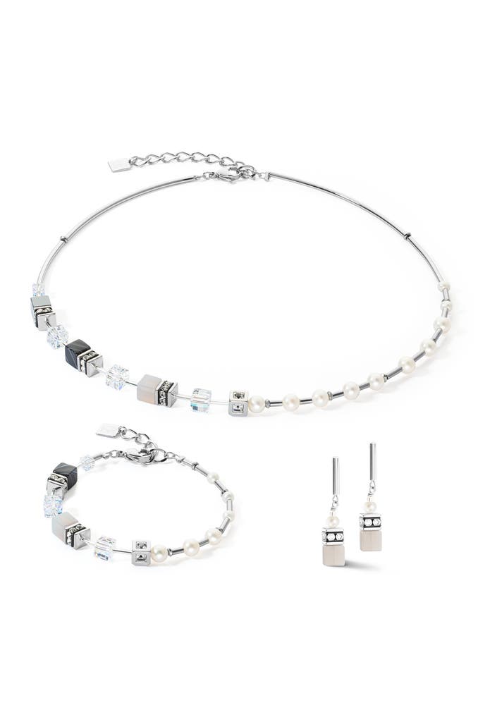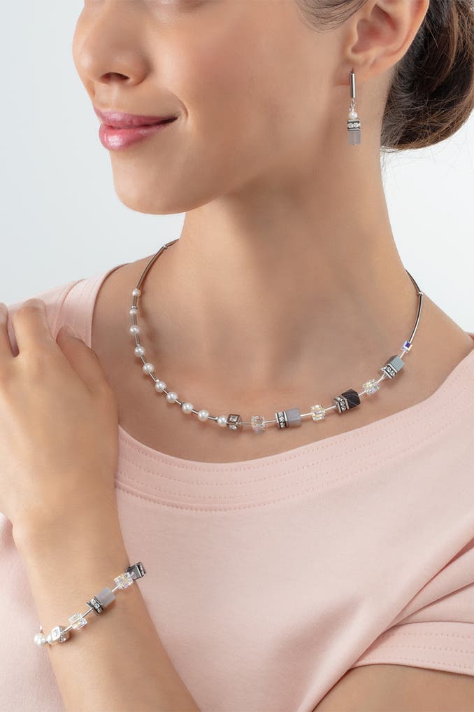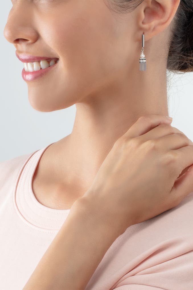 COEUR DE LIONOhrringe GeoCUBE® Fusion Precious Pearl Mix grau-silber