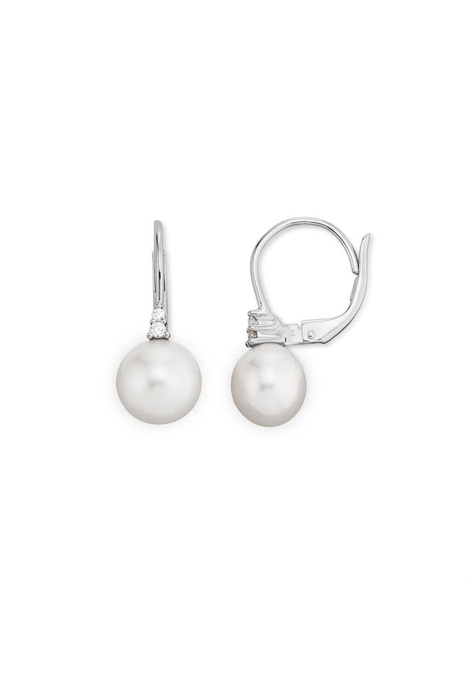 Orolino - Damen-Ohrhänger aus 585 Weißgold mit 2 weißen Perlen und 4 natürlichen Brillanten zus. 0,05ct.