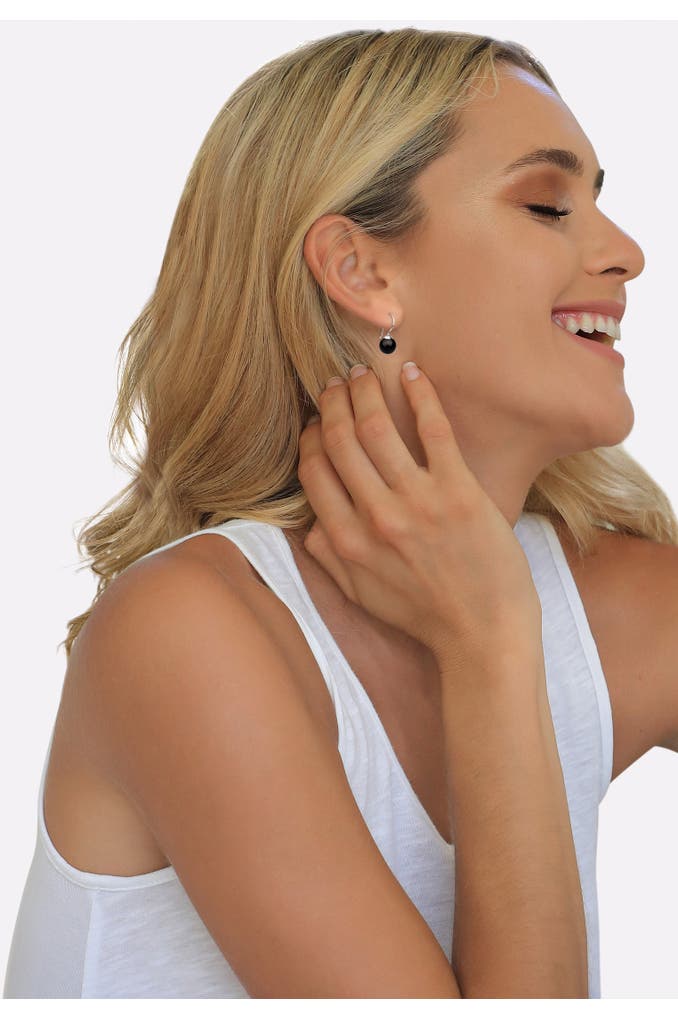 NENALINAOhrringe Hänger Basic Synthetische Perle 925 Silber Schwarz