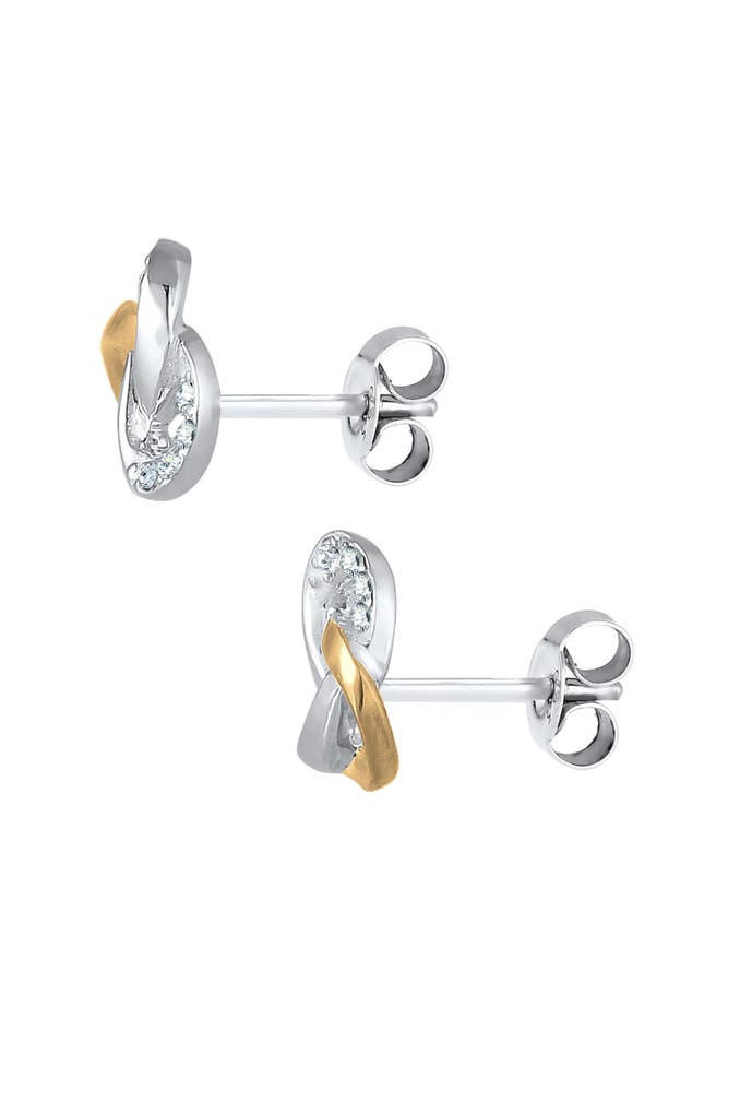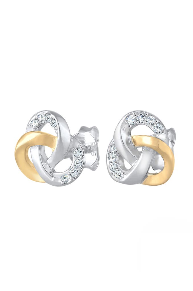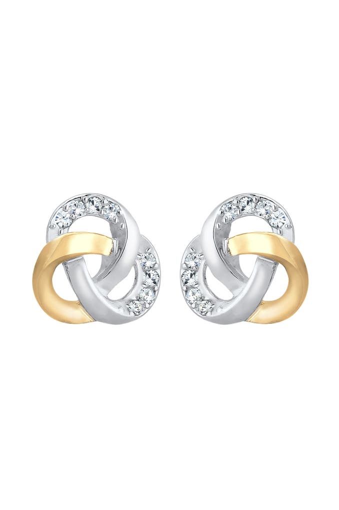 ELLIOhrringe Ohrstecker Knoten Glas Kristalle 925 Sterling Silber Bicolor Silber