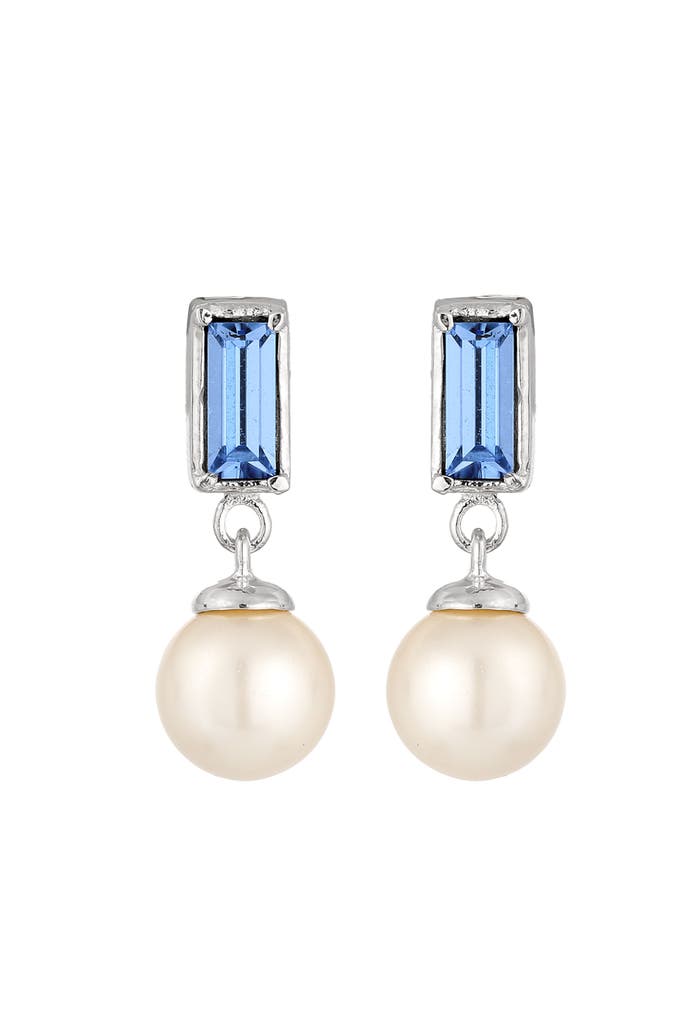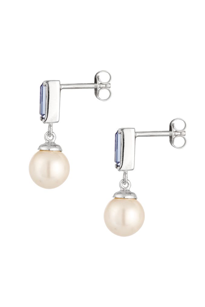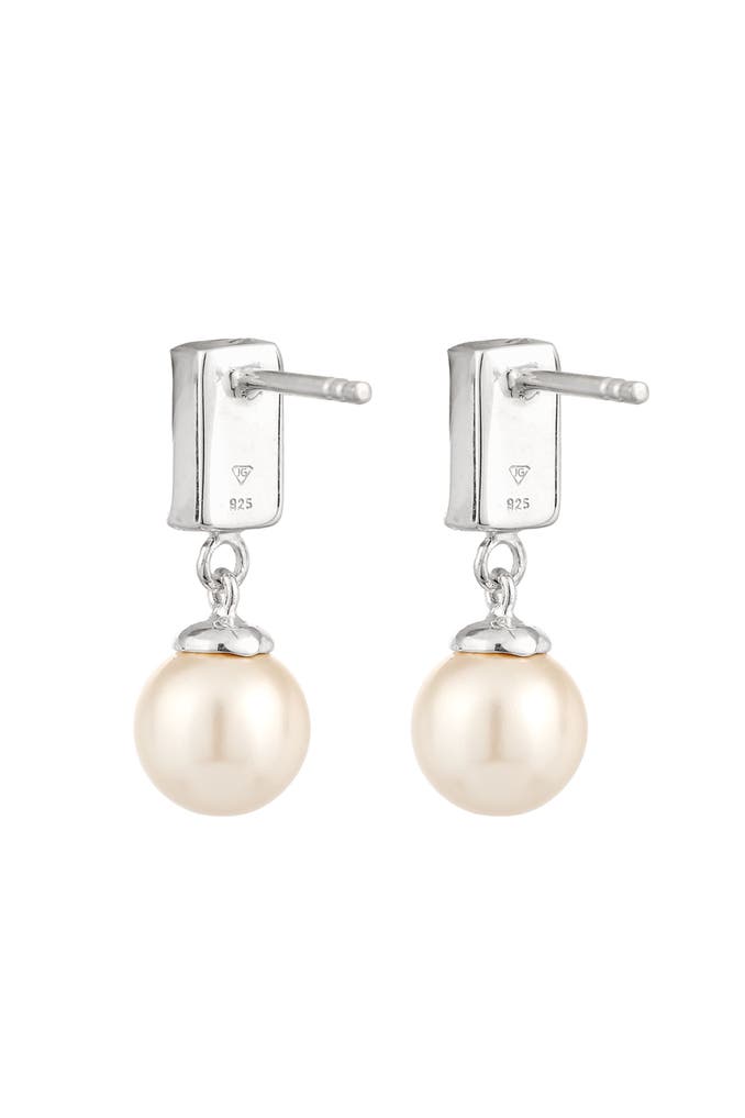 ELLIOhrringe Ohrstecker Rechteck Synthetische Perle Weiß 925 Sterling Silber, mit Kristallen von Swarovski® Silber