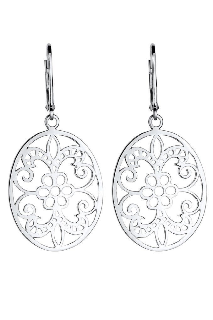 ELLIOhrringe Ornament Blume Orientalisch Oval Schmuck Geschenk 925 Silber Silber