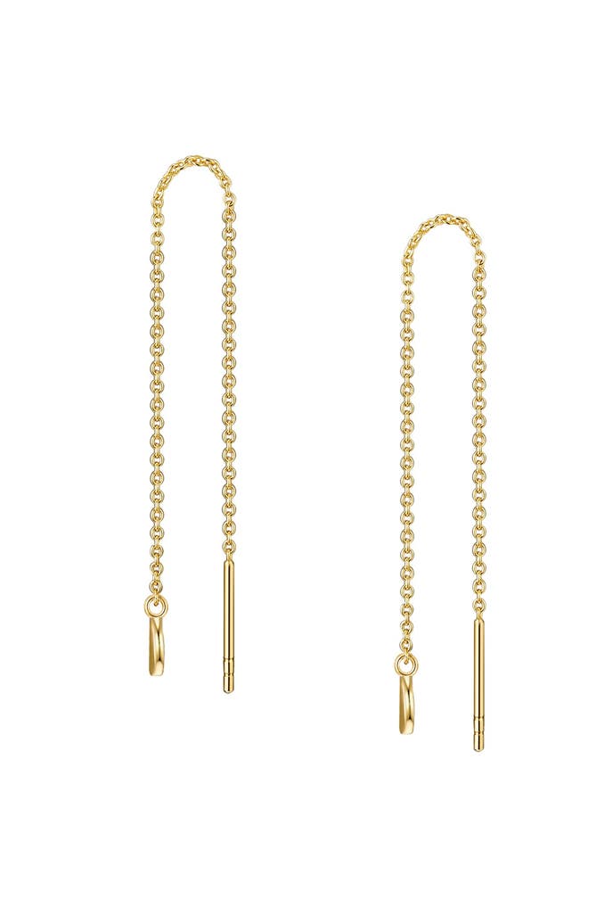 Ein Must-Have der Saison sind die Durchzieher - auch Chain Earrings genannt -, bei denen du eine lange filigrane Kette durch das Ohrloch ziehst. An einem Kettenende baumelt ein schmales Stäbchen, während das andere Ende unterschiedlichst gestaltet werden kann - bei diesem Design des Labels Glanzstücke München mit einem dezenten, runden Mini-Medaillon. Ankerkettchen, Stäbchen und Endstück sind aus 925 Sterlingsilber gefertigt und mit Gelbgold veredelt - eine Edelmetallnuance, die mit ihrem warmen Glanz alle Fashionistas begeistert. Ein perfektes Geschenk für Schmuckliebhaberinnen, die extravagante Accessoires lieben!