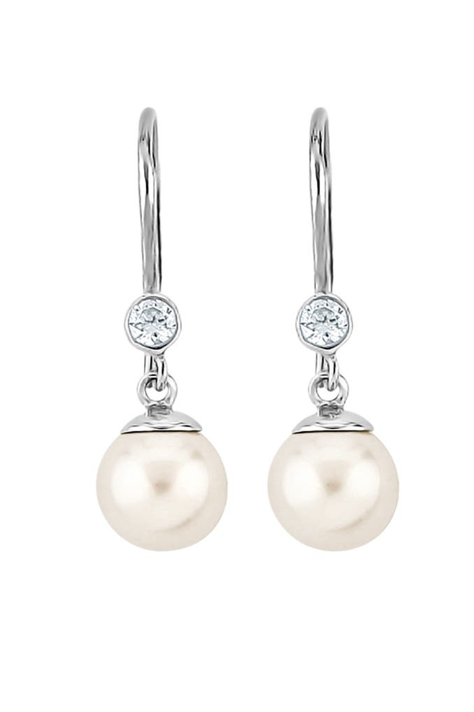 Diese eleganten Ohrhänger wurden aus feinstem 925er Sterling Silber und glänzenden Synthetische Perle gefertigt. Kleine funkelnden Zirkonia Kristalle zieren die Ohrhänger. Diese feinen Perlen Ohrringe lassen Ihr Outfit strahlen. Ein Klassiker, der in keinem Schmuckkästchen fehlen darf.