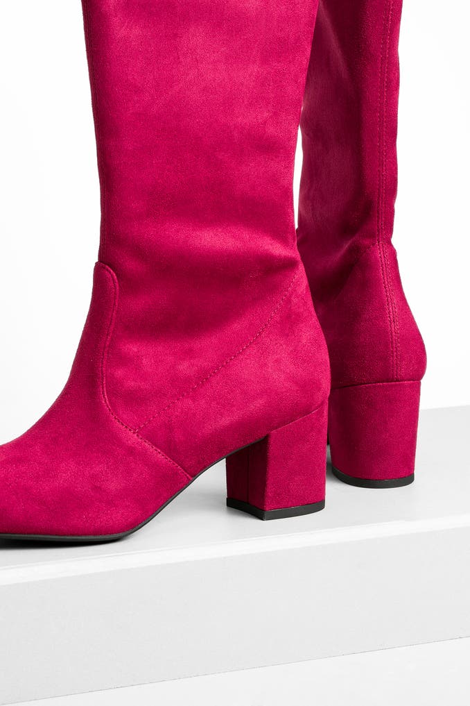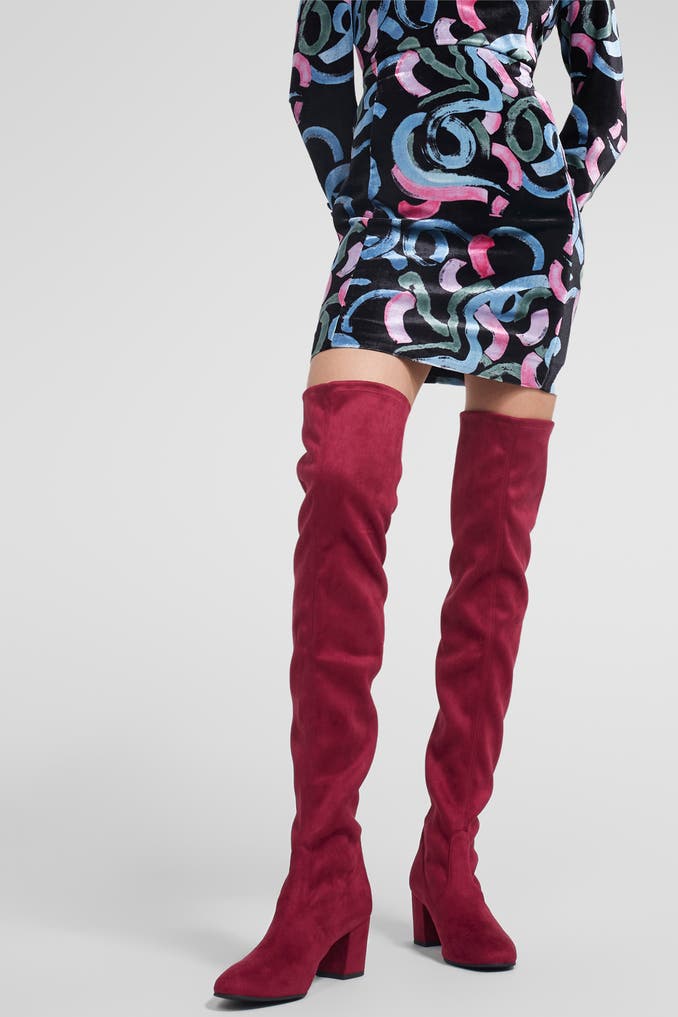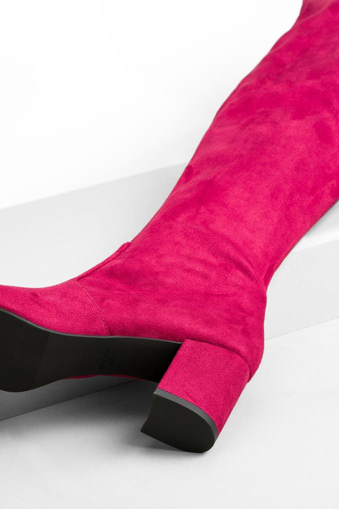 Verwöhnen Sie Ihre Füße mit den Overknees 'Genna 60' in Beere von Stuart Weitzman! Diese klassischen Stiefel aus Lederimitat begeistern nicht nur durch ihr einfarbiges Design, sondern auch durch den bequemen Blockabsatz.