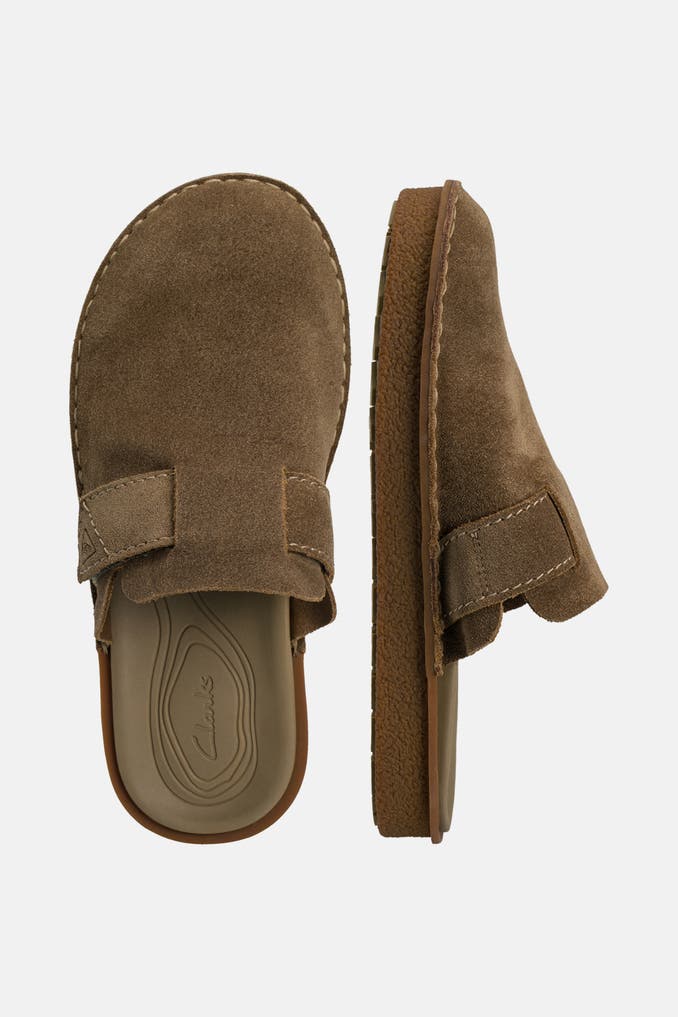 Entdecken Sie die stilvollen Pantoletten 'Litton' in Khaki von Clarks! Das rau-lederne Obermaterial verleiht dem Schuh eine hochwertige Optik und Haptik. Mit der runden Schuhspitze und der bequemen Gummisohle sind sie perfekt für entspannte Freizeit-Looks geeignet.