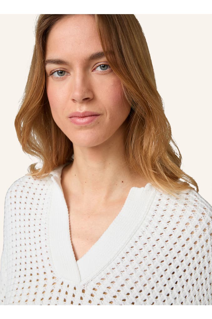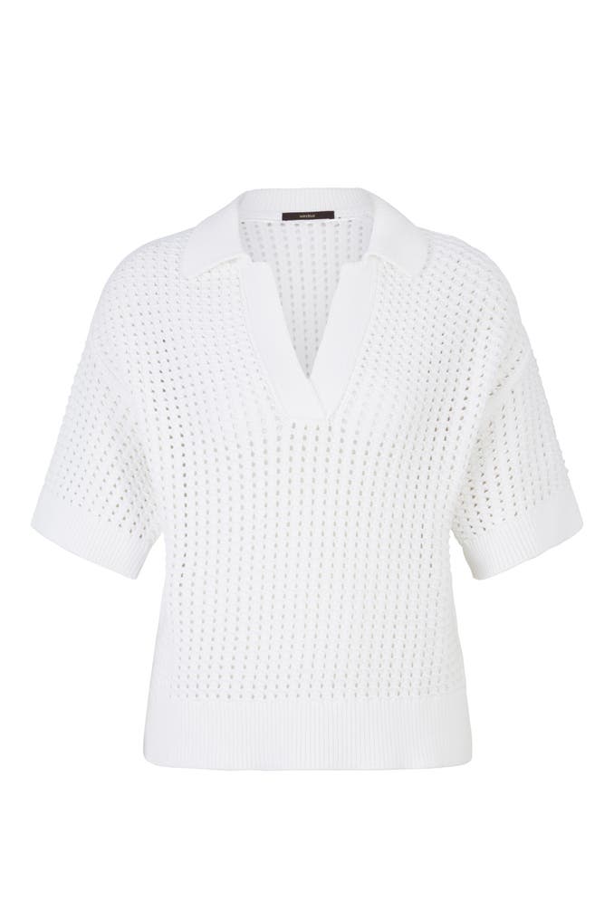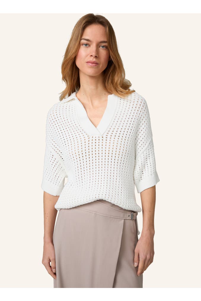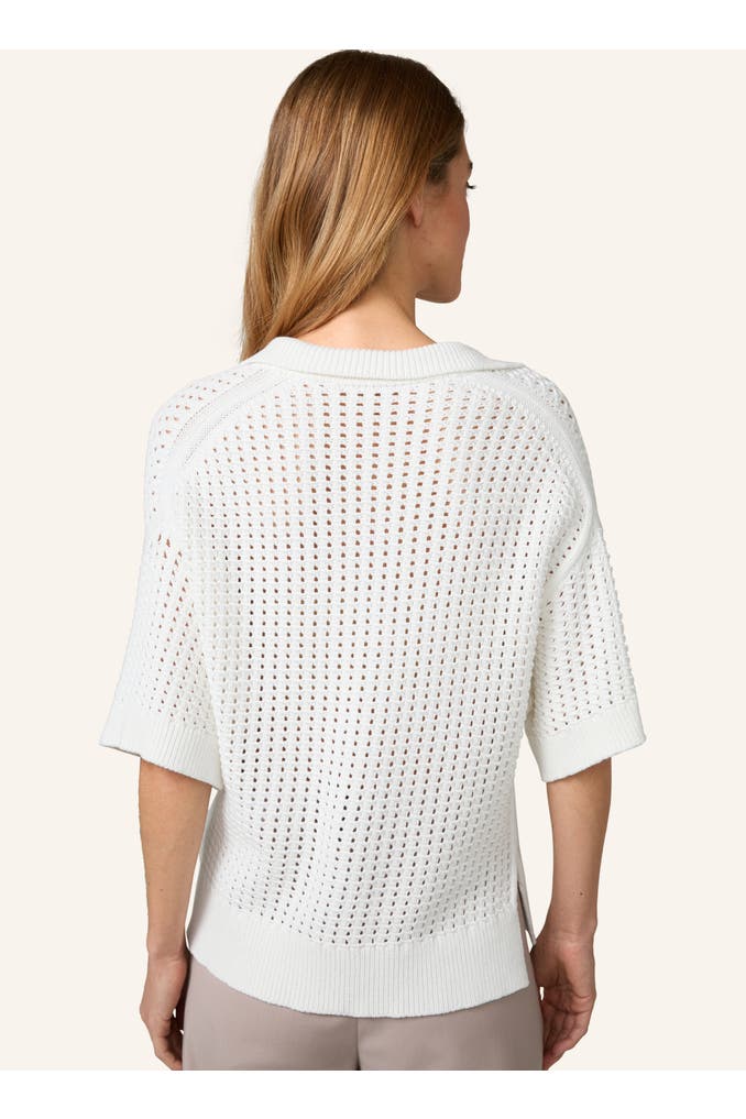 WINDSOR.Pullover Crochet-Strick-Polo-Shirt in Weiß weiss