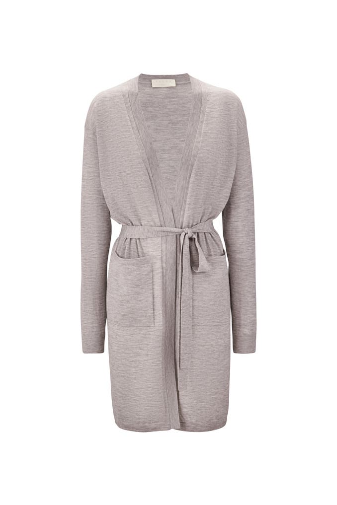 Feinster Cardigan aus ultrafeiner, leichter Kaschmir Qualität. Das feine Kaschmir liegt weich und geschmeidig auf der Haut und bietet einen sensationellen Tragekomfort zu jeder Jahreszeit. Der Cardigan hat eine dekoraive Lochmusterung an den vorderen Säumen und kann offen oder mit dem dazugehörigen Strickgürtel getragen werden. Die Strickjacke ist zeitlos elegant und für jeden Anlass geeignet - als Loungewear oder im Alltag ist der Cardigan eine luxuriöse Wahl für Ihre Sinne.