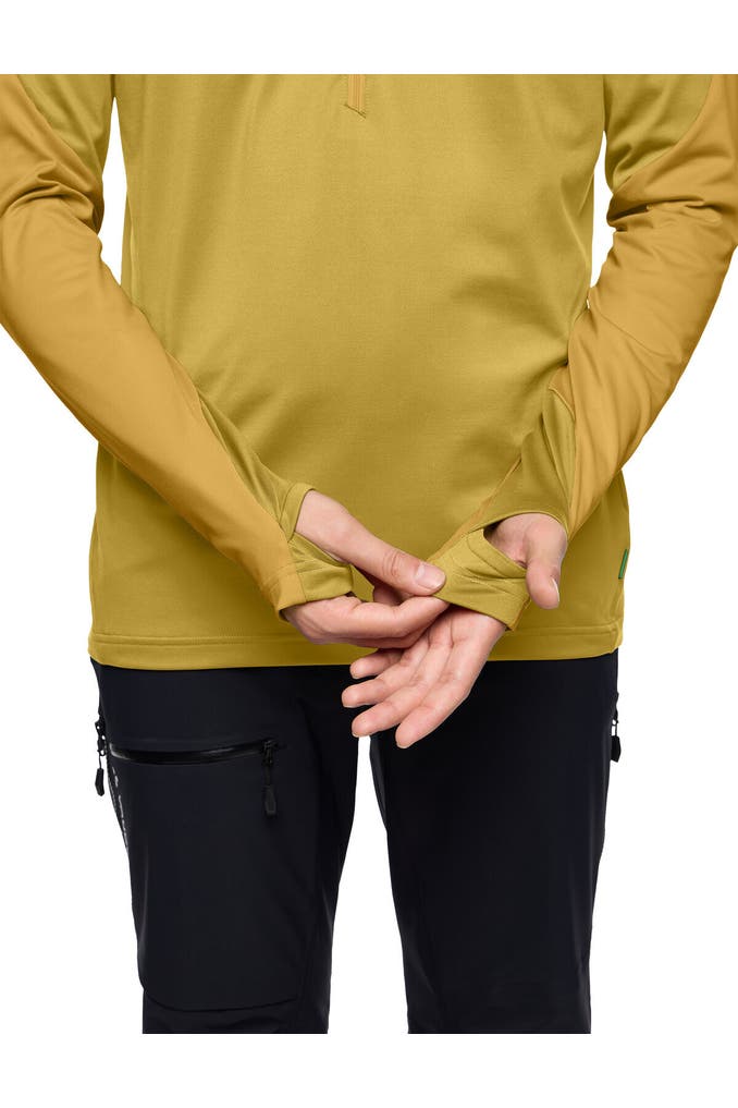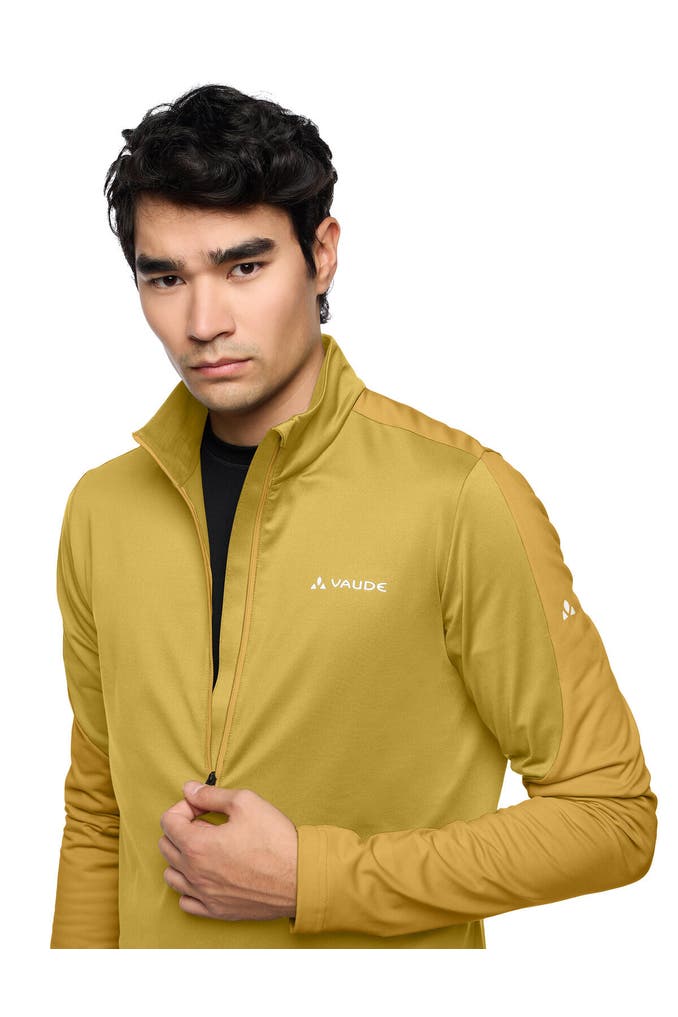 Der Men's Livigno Halfzip II ist die perfekte leichte Zwischenschicht für sportliche Touren. Der dünne Midlayer besteht aus elastischem, sehr weichem Fleecematerial und sorgt für eine optimale Regulierung der Temperatur bei gleichzeitig hohem Tragekomfort. Sein langer Reißverschluss bietet bei Bedarf gute Belüftung, der athletische Schnitt in Kombination mit dem elastischen Material garantiert eine optimale Bewegungsfreiheit. Egal ob man ihn auf der nächsten Bergtour dabei hat oder als Transalp-Begleiter mit dem Bike - dieser Midlayer lässt sich sehr vielseitig einsetzen. Das VAUDE Green Shape-Label steht für ein umweltfreundliches, funktionelles Produkt aus nachhaltigen Materialien.