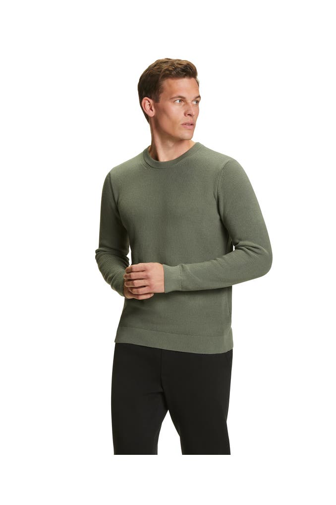 Der lässige Pullover mit Rundhalsausschnitt ist aus reiner Bio-Baumwolle und besticht durch seine sportive Rippenoptik. Für den optimalen Fit ist der Pullover in "Fully-Fashion" verarbeitet. Französische Schulternähte sowie der sportliche, gerippte Halsausschnitt und die gerippten Bündchen machen den Style zu jeder Jahreszeit und zu jedem Look zu Ihrem perfekten Begleiter.