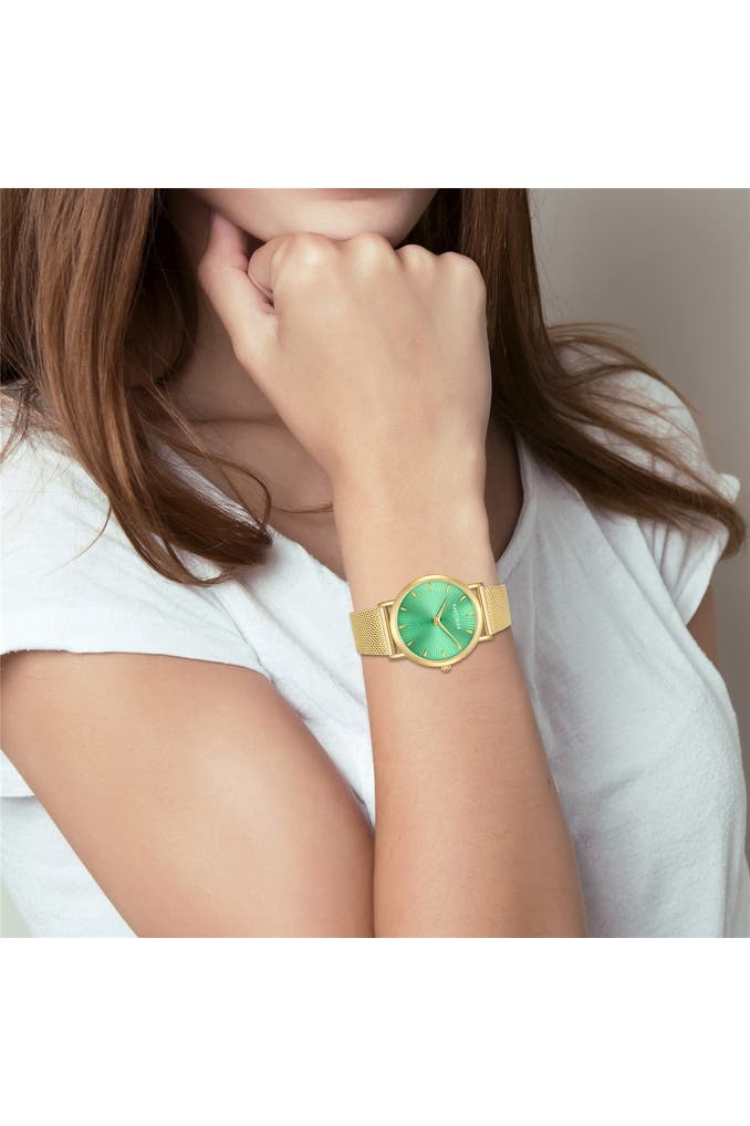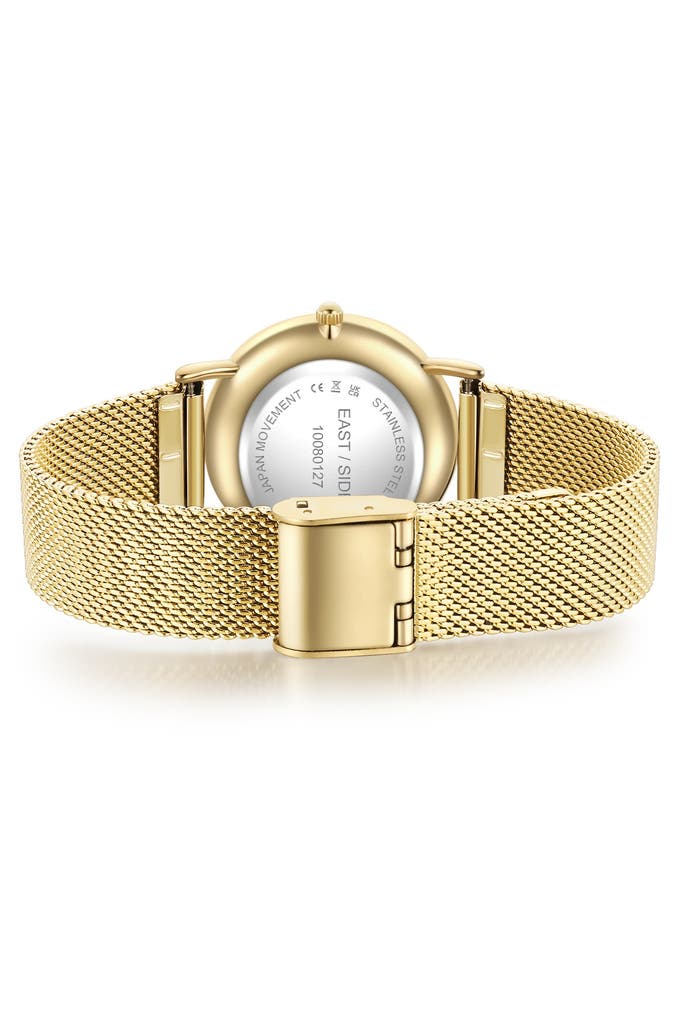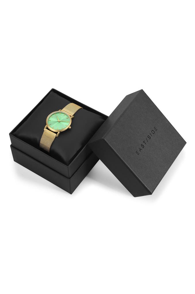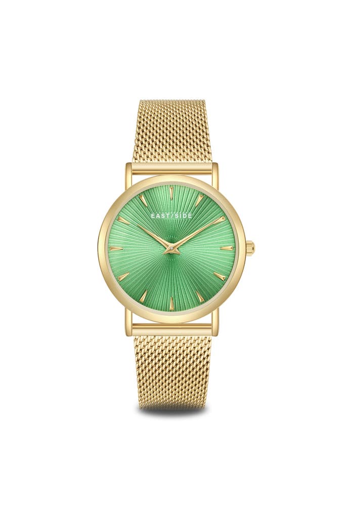 Diese Damenuhr des jungen Labels EASTSIDE strahlt exquisiten Chic aus - perfekt für alle, die elegante Accessoires mögen. Ein puristisches Gehäuse mit Gelbgold-IP-Beschichtung vereint sich harmonisch mit einem Edelstahl-Milanaise-Armband, beides veredelt mit einer Ionenplattierung in warm schimmerndem Gelbgold. Einen spannenden Kontrast bildet das dunkle Ziffernblatt, das dank raffiniertem Sunray-Schliff das Licht in verschiedenen Winkeln reflektiert. Schlichte Strichindizes und Dauphinzeiger bieten dem Auge Orientierung und runden das aufgeräumte Design ab. Das Innenleben punktet mit einem verlässlichen und wartungsfreien Quarzuhrwerk.