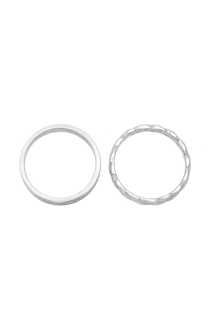 Dieses feminine Ring-Set ist ein Accessoire im schlichten und dennoch reizvollen Style. Der Bandring schlicht geformt mit Rillen Design. Abgegrenzt dazu ein harmonisch geflochtener Fingerring, der diese Ringschmuck Zusammenstellung besonders hervorhebt. Zeitlose Schmuckstücke im Doppelpack die mit puristischer Schönheit begeistert.