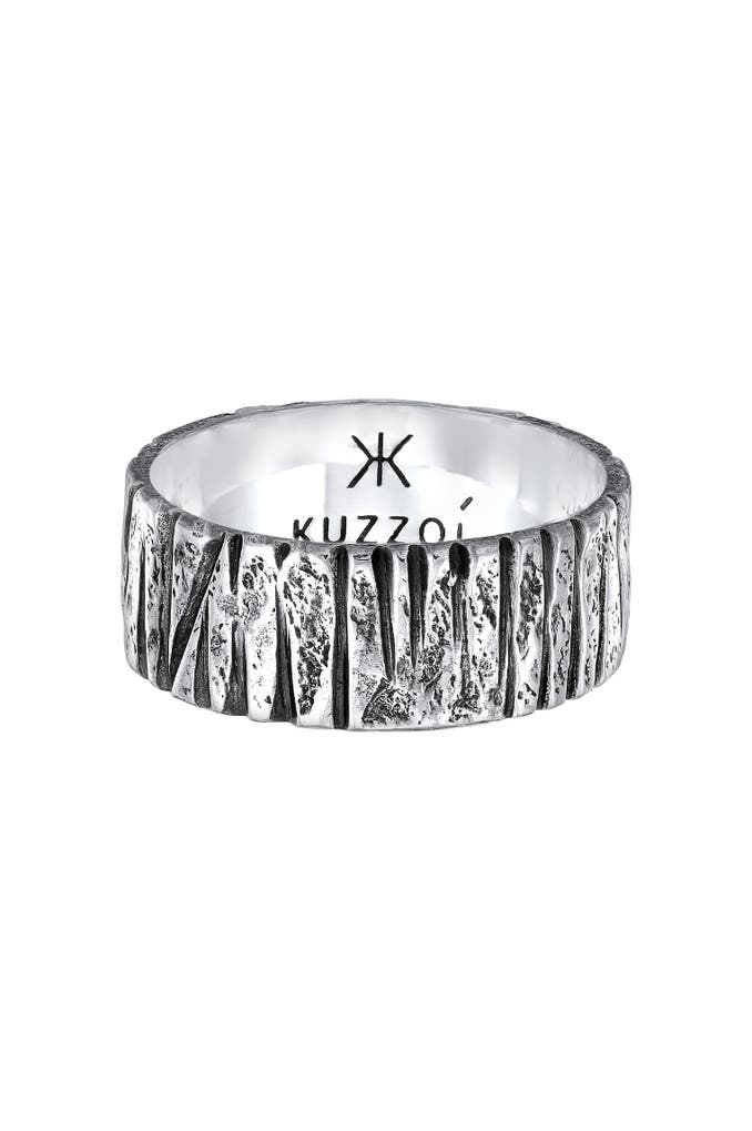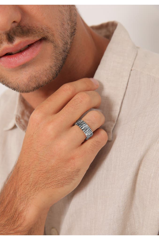 KUZZOIRing Bandring Breit Struktur Gehämmert 925 Silber Schwarz