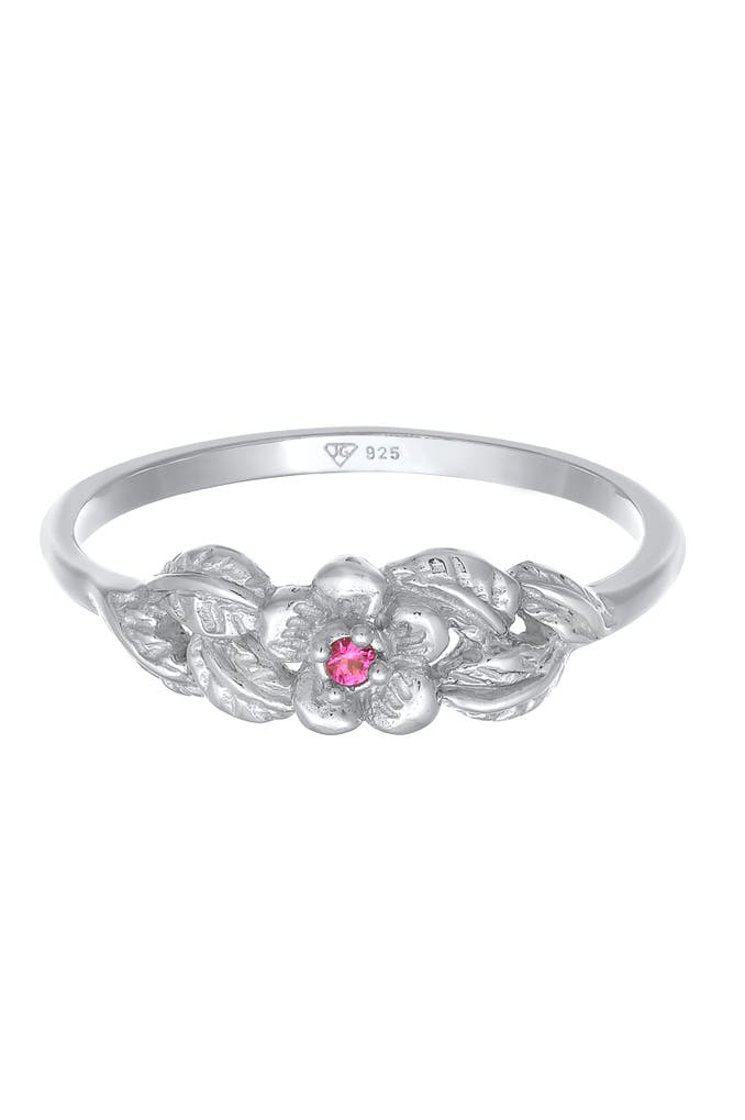 ELLIRing Blume Floral synth. Rubin 925 Silber vergoldet Silber