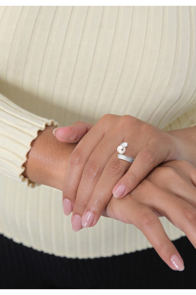 Dieser zeitlose Silberring mit gebürsteter Oberfläche aus feinstem 925er Sterling Silber wird von einer Synthetische Perle geziert. Ein feminin zeitloses Must-Have für jede modebewusste Frau und ein Statement für die Ewigkeit.