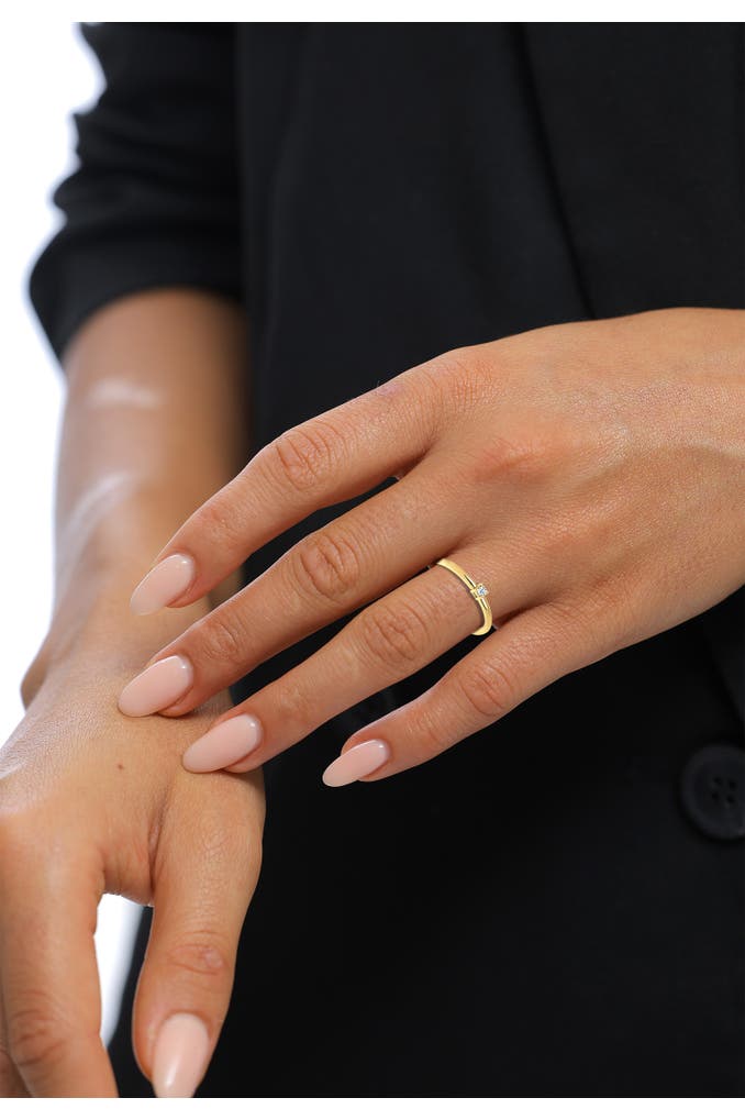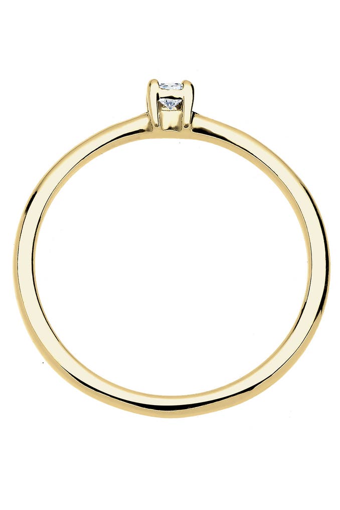 Entdecken Sie den zeitlosen Charme dieses eleganten Verlobungsrings aus 375 Gelbgold, der mit einem funkelnden Diamanten im Brillantschliff (Weiß/Wesselton (H), 0.03 ct) verziert ist. Dieser Ring ist ein Meisterwerk der Handwerkskunst und besticht durch seine glänzende Optik, die jeden Abendlook perfekt ergänzt. Der Diamant ist in einer klassischen Krappenfassung eingefasst, die seine natürliche Schönheit und Brillanz hervorhebt. Lassen Sie sich von der Raffinesse und dem edlen Design dieses Schmuckstücks verzaubern, das sich ideal als Geschenk für besondere Anlässe eignet. Erleben Sie die perfekte Kombination aus Eleganz und Alltagstauglichkeit und machen Sie diesen Ring zu einem unverzichtbaren Teil Ihrer Schmuckkollektion. Entdecken Sie weitere exquisite Schmuckstücke und lassen Sie sich inspirieren.