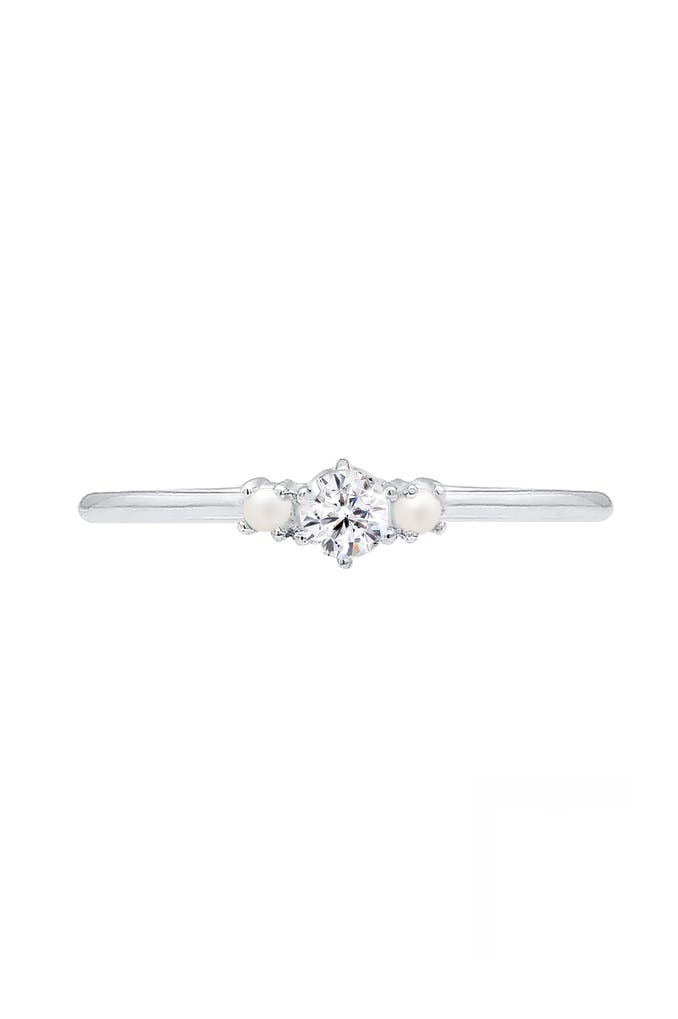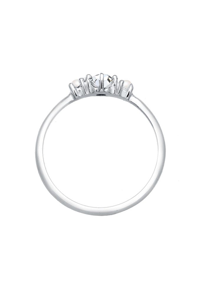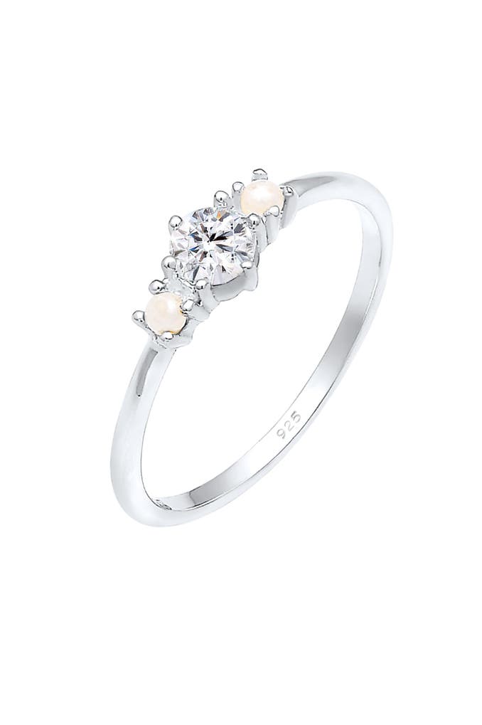 Entdecken Sie den Zauber dieses eleganten Verlobungsrings aus 925 Sterling Silber, der Ihre Abendgarderobe perfekt ergänzt. Mit einem glänzenden Finish und einem raffinierten Design zieht dieser Ring alle Blicke auf sich. Der Ring ist mit zwei runden synthetischen Perlen (Weiß) und einem funkelnden Glas-Kristall im Xirius-Schliff (Weiß) verziert, die in einer sicheren Krappenfassung gehalten werden. Die Kombination aus hochwertigen Materialien und handwerklicher Präzision macht diesen Ring zu einem einzigartigen Schmuckstück, das sowohl Eleganz als auch zeitlose Schönheit verkörpert. Lassen Sie sich von der Anmut dieses Rings verzaubern und machen Sie ihn zu einem Teil Ihrer Schmuckkollektion. Erkunden Sie weitere exquisite Schmuckstücke und finden Sie das perfekte Accessoire für jeden Anlass.