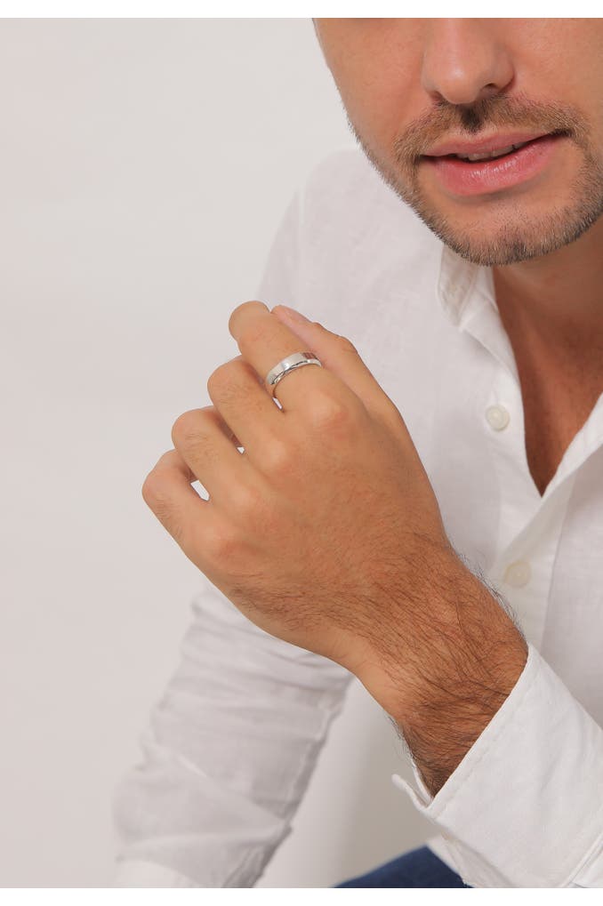 Ein wunderschöner 6 mm breite Basic Herrenring, aus feinstem 925er Sterling Silber handgefertigt, mit modern abgeschrägten Kanten. Das ansprechend zeitlose Design wirkt schlicht und dennoch auffallend. Die stilvolle Optik verleiht dem männlichen Outfit einen maskulinen Touch. Ein Schmuckstück, das zu jedem Anlass ein hervorragendes Basic-Accessoire ist.