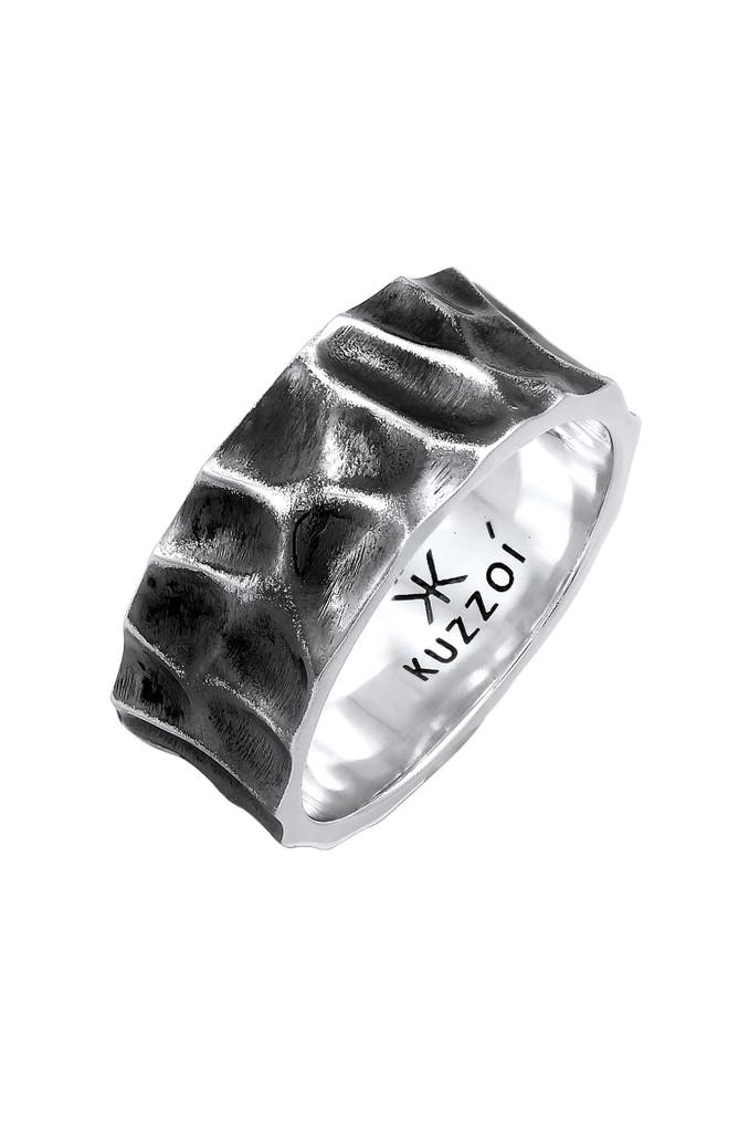 KUZZOIRing Herren Bandring Geschmiedet Used Look 925 Silber Grau